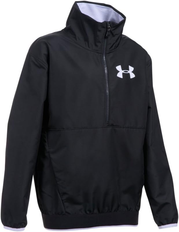 UA Storm technology repels water without sacrificing breathability. Ultra-lightweight, breathable but still extremely durable woven fabric. Breathable mesh lining keeps you dry & comfortable. 1/2 zip structured collar with back wordmark graphic . Elastic color pop hem & cuffs.