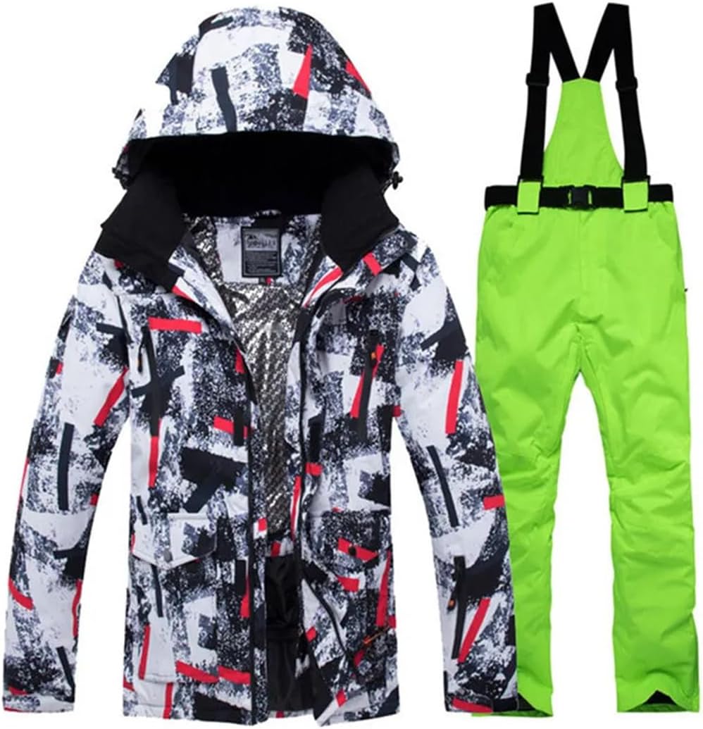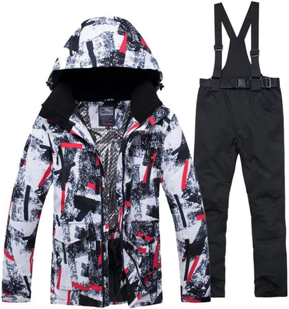 The ski suit is made of technical fabrics, and the surface of the clothes is suitable for grade 4 waterproof treatment. It can reduce the absorption of water by the fabric, so that water droplets can be easily thrown off. There is a transparent PU film under the fabric. This membrane can also help fabrics reduce moisture penetrationDesign:Detachable hat,the cuff velcro and the hem wind skirt's design,which could keep warm and protect you from the wind(cold) when you are going any outdoors'activties,such as,skiiing,snowboard,hiking,etc.Besides,there are large inside pocket and inside pocket with earphone hole in it,which you could place your earphone and your smartphonePleasing temperature:You could notice there are hem windproof skirt buckle and the detachable hat,which bring you a comfortable temperature and you won't feel too cold or too hotBreathable and Quick-Drying:Breather mesh zipper design,you can always keep cozy and dry during exerciseJacket1) Smooth & Durable YKK Zipper closure2) Detachable and adjustable hooded, keep your head warm3) Adjustable cuffs, stretchable glove with thumb hole4) Inside windproof snap powder skirt, internal drawcord hem5) Mesh pocket and Zipper pocket to put your phone, or your small accessoriesPants1) Adjustable waist , allows the pant to fit comfortably2) Side pockets and back pockets to hold your accessories3) Windproof bottom and the elastic trouser legs, effectively prevent wind and snowSize notes: smaller than standard, choose 1-2 bigger size. Please refer to our size chart and choose the appropriate size before ordering