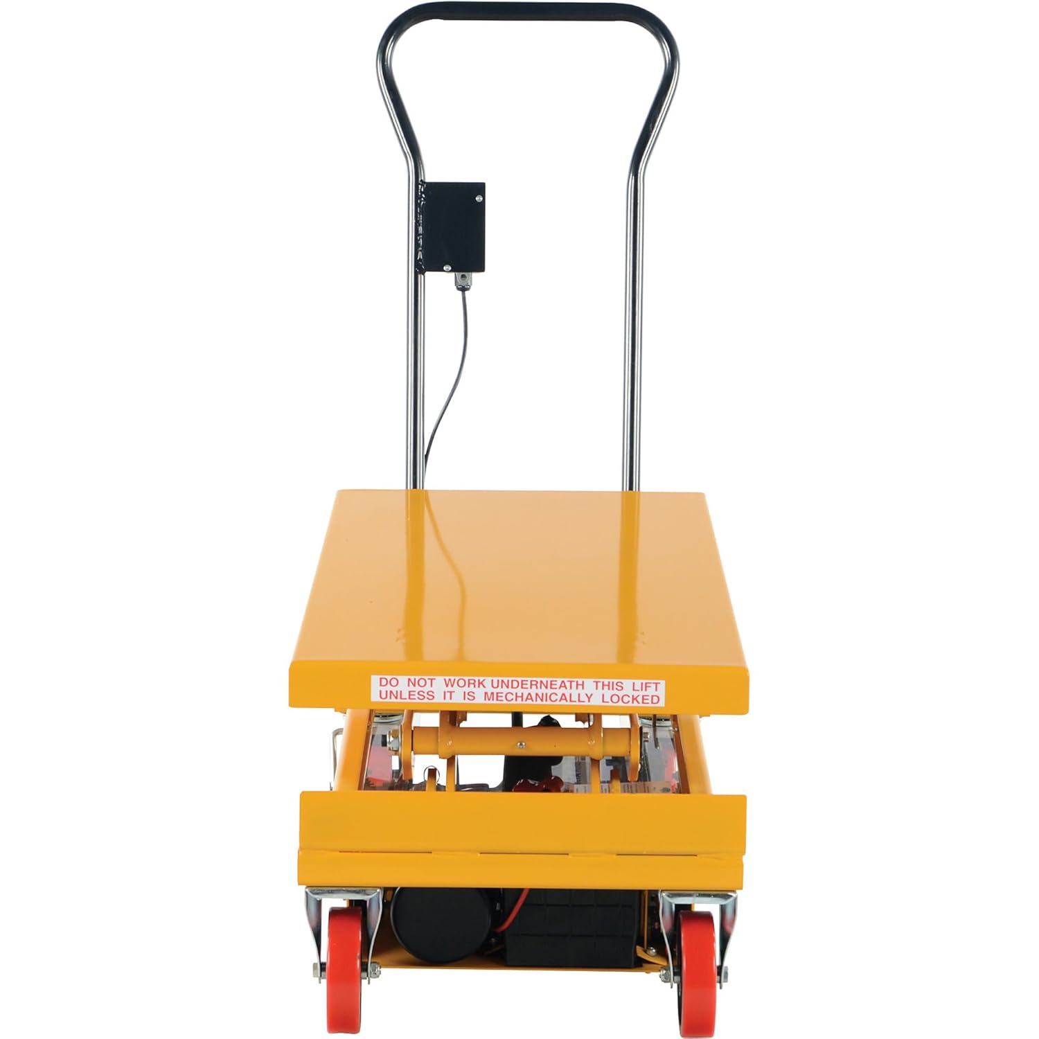 The DC powered Hydraulic elevating cart is ideal for quick lifting and ergonomic material handling. The battery-powered unit allows operators to raise and lower platform with the push of a button. The unit rolls on two rigid and two swivel polyurethane casters. It includes battery, on-board battery charger and battery charge indicator gauge. Features an internal safety velocity fuse in each cylinder.