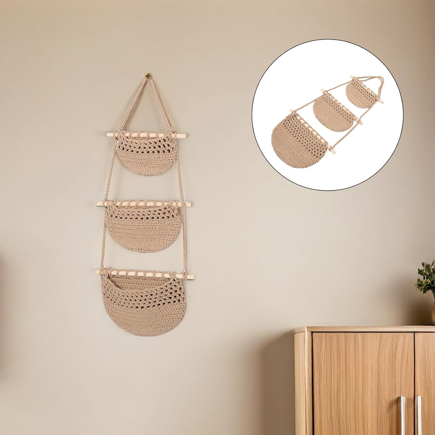 Package List 1 x hanging storage basket Features -Product Info: Hanging storage basket -practicable choice: the natural cotton rope woven basket is a practicable solution, combining beautiful texture and utility for sustainable home storage woven hanging basket -No more clutter: the woven small hangings basket is designed to maximize kitchen wall space, helping you organize produce, cutlery, or small items in a vertical yet accessible manner fruit and vegetable hanging bag -Color:Light Brown -Size:77.00X33.00X3.00cm/30.26X12.97X1.18in -Handmade excellence: experience the durability and elegance of a handwoven cotton rope storage basket, expertly crafted for kitchen and home use hand-woven storage basket -Decorative appeal: hanging fruit woven baskets add stylish boho flair to your kitchen, serving as both wall hanging basket and functional decor for any modern home hanging produce basket for kitchen -Material:Cotton rope -Breathable cotton: the net organizer kitchen uses cotton rope woven basket construction for optimal ventilation, keeping fruits and vegetables fresher for longer periods fruit holders hangingGoods Informationvertical hanging basket Use as a hanging vegetable basket or a fruit basket for kitchen hanging, airflow to keep items fresh.hanging fruit and vegetable basket With its versatile hand-woven cotton rope storage basket construction and decorative appeal, it’s perfect for kitchens, bathrooms, or living spaces.wall hanging rope basket Handcrafted from premium cotton, this multifunctional hanging storage net offers a practical solution for organizing produce