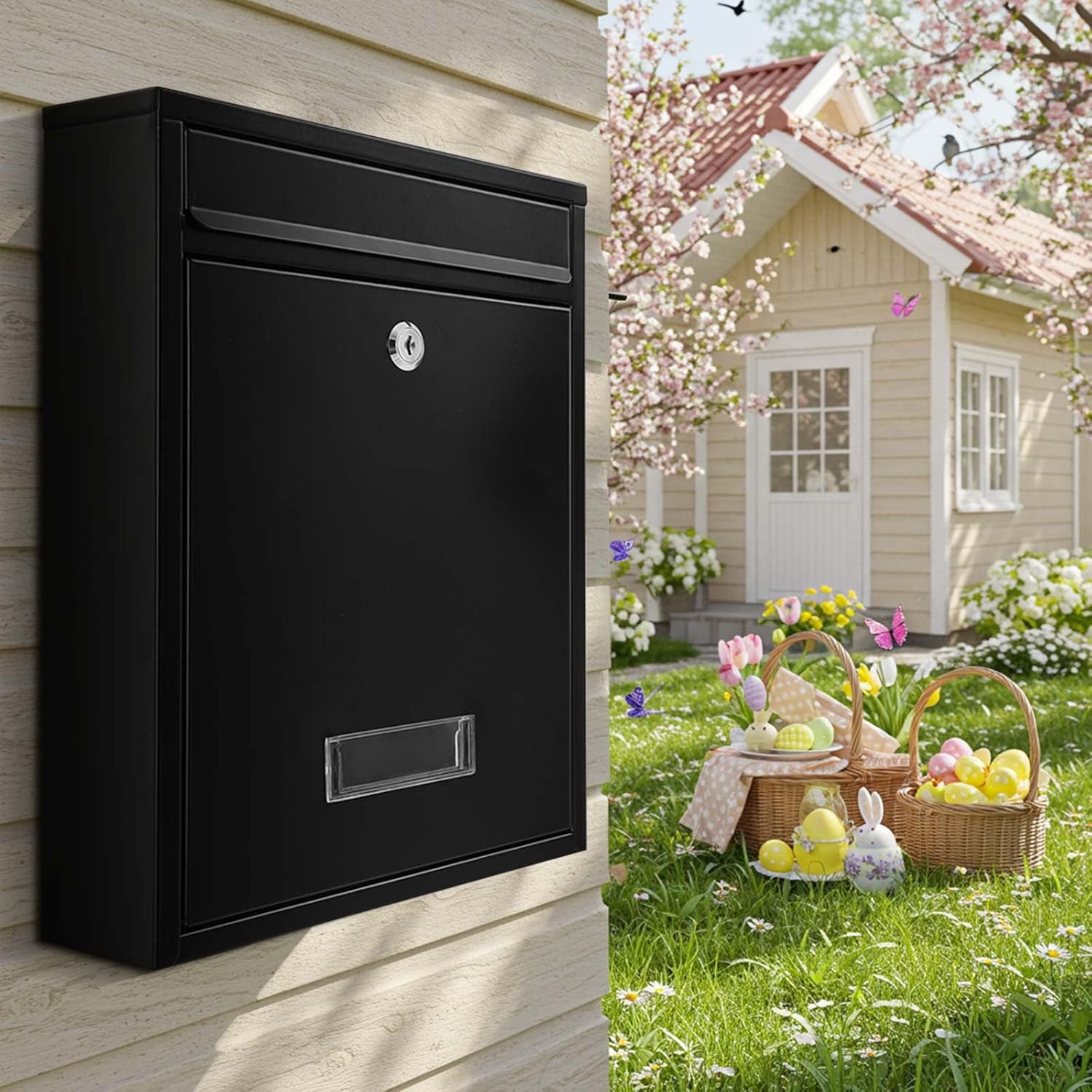 Features: A thoughtfully designed transparent window on the mail box allows for a quick inspection of its contents without the need to unlock the box. This small feature adds convenience, letting you see at a glance whether you have mail waiting inside. The large wall mounted mailbox is user-friendly in terms of installation, designed to mount effortlessly on various wall types. Its easy setup saves time and hassle, allowing you to secure your mail in just a few quick steps, making it a practical choice for busy environments. Specifications: Material: steel Color: black Size: 15.8 x 11 x 4.7 inches/ 40 x 28 x 12 cm Package includes: 1 x Wall mount mailbox with key lock Notes: Manual measurement, please allow slight errors on size. The color may exist a slight difference due to different screen displays