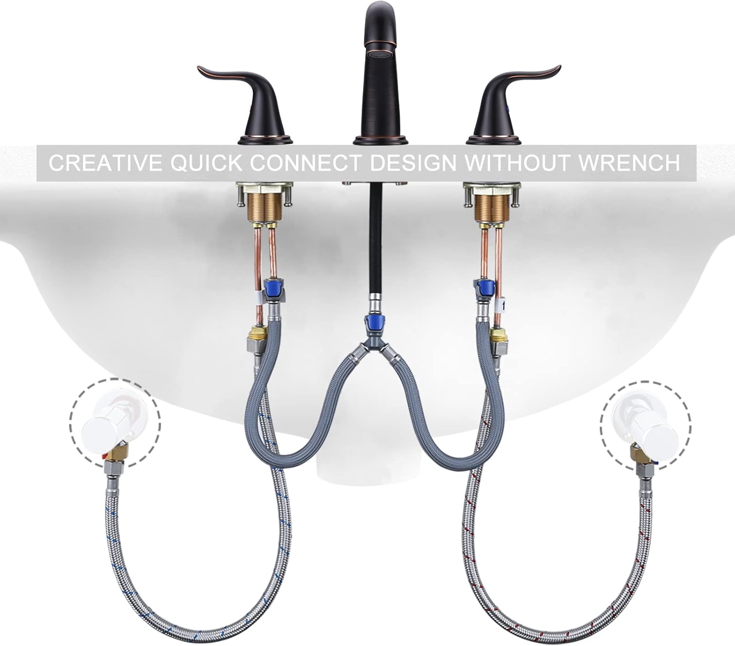 WOWOW Widespread Bathroom Faucet Oiled Rubbed Bronze Bathroom Sink Faucet 3 Hole Vanity Faucet 2 Handle Basin Faucet and Pot Filler Faucet Wall Mount Brass Faucets Kitchen Double Handle Oil Rubbed Bro