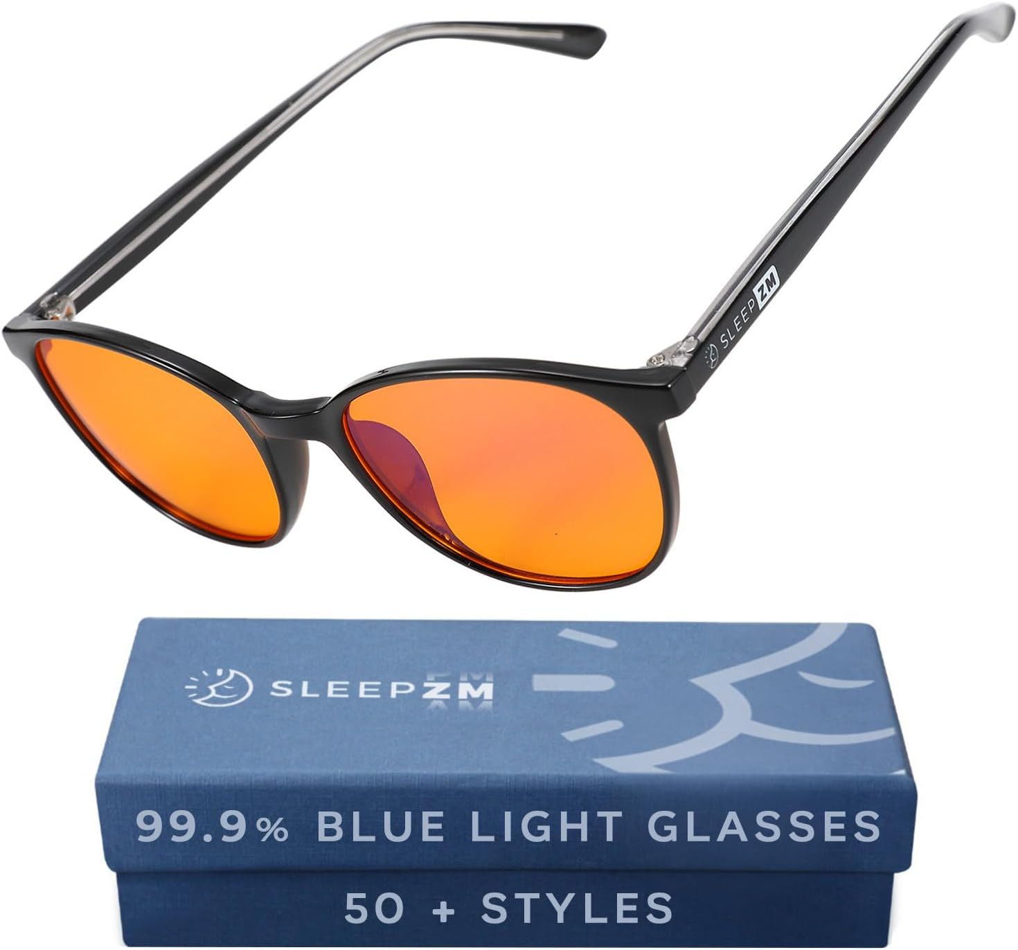 Sleep ZM 100% Blue Light Blocking Glasses - Women + Men - Better Sleep - Anti Eye Strain Protection - Computer Screens Gaming