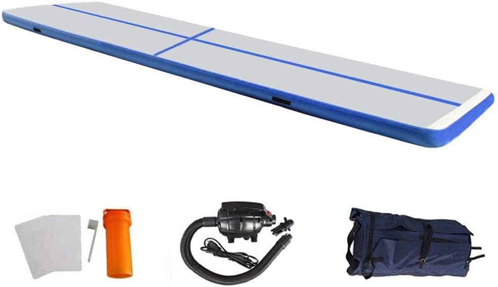 EZ GLAM gym home series, make your gym training easier any where Home-edition gymnastic mat different size: DIFFERENCES WITH THE AIRBOARD The Airfloor is 10 cm high, gives more bounce . Air floor: 3ft wide x 10ft long x4 in thick ( dark blue/red/light blue/pink/green) Air board:3.3'x2'x4''(green) Features of Gymnastics mat : a. Set up in your living room, back yard, at the beach, anywhere, whether indoor or ourdoor. b. Easily portable from gym to gym. The Air Floor is so light and small it will easily fit on the back seat of your car. c. Inflating and deflating is done in a single minute. d. You can set the pressure to anything between rock-hard and bouncy-soft. e. Jumps can be repeated more often with less chance of overuse injuries than on traditional training equipment, martial arts, elderly gym, fitness ...AND MORE! Note: 1. Due to manual measurement,please allow 1-2cm difference. 2. Picture shown, which mainly lies in different light effect and computer monitor. Double Package - inner handle bag,outer thicken box 1. Air floor 2.Electric pump/ Foot air pump 3. Handle canvas bag 4. Repair kit