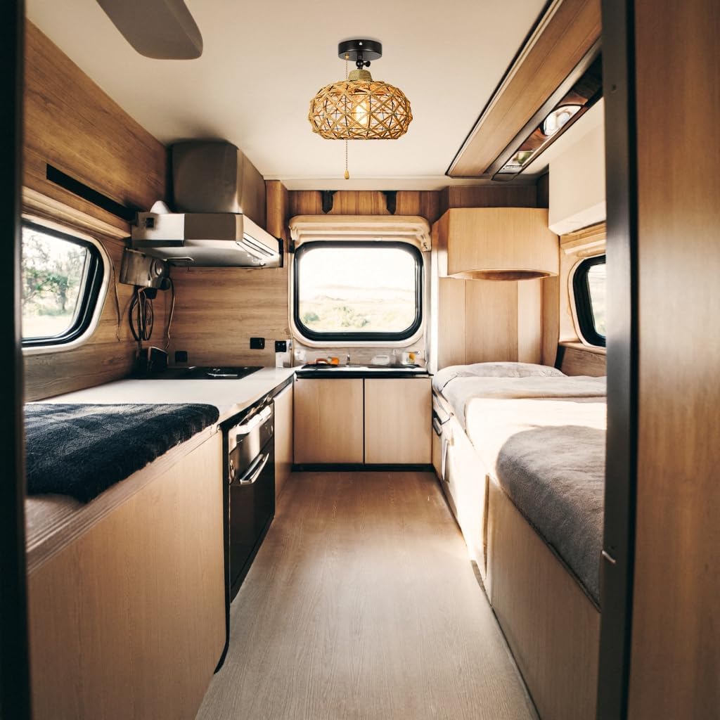 Specification: Type: Semi flush ceiling light Style: Vintage, Edison, Rustic, Farmhouse, Modern Decor Bulb Base: E26 Medium Base (Note: 4W Warm White G45 LED bulb included Voltage: 12V Suction cup diameter: 4.7in/12cm Diagonal length of Brown Mini Design Bohemian Hollow-carved Designed Rattan lampshade: 11.8in/30cm, height: 7.9in/20cmColor: Brown Update your RV or Trailer interior lights with this beautiful contemporary ceiling light Perfect for your rv camper, porch, dining room, kitchen, living room, study room, bedroom, foyer, garage or any space you want.
