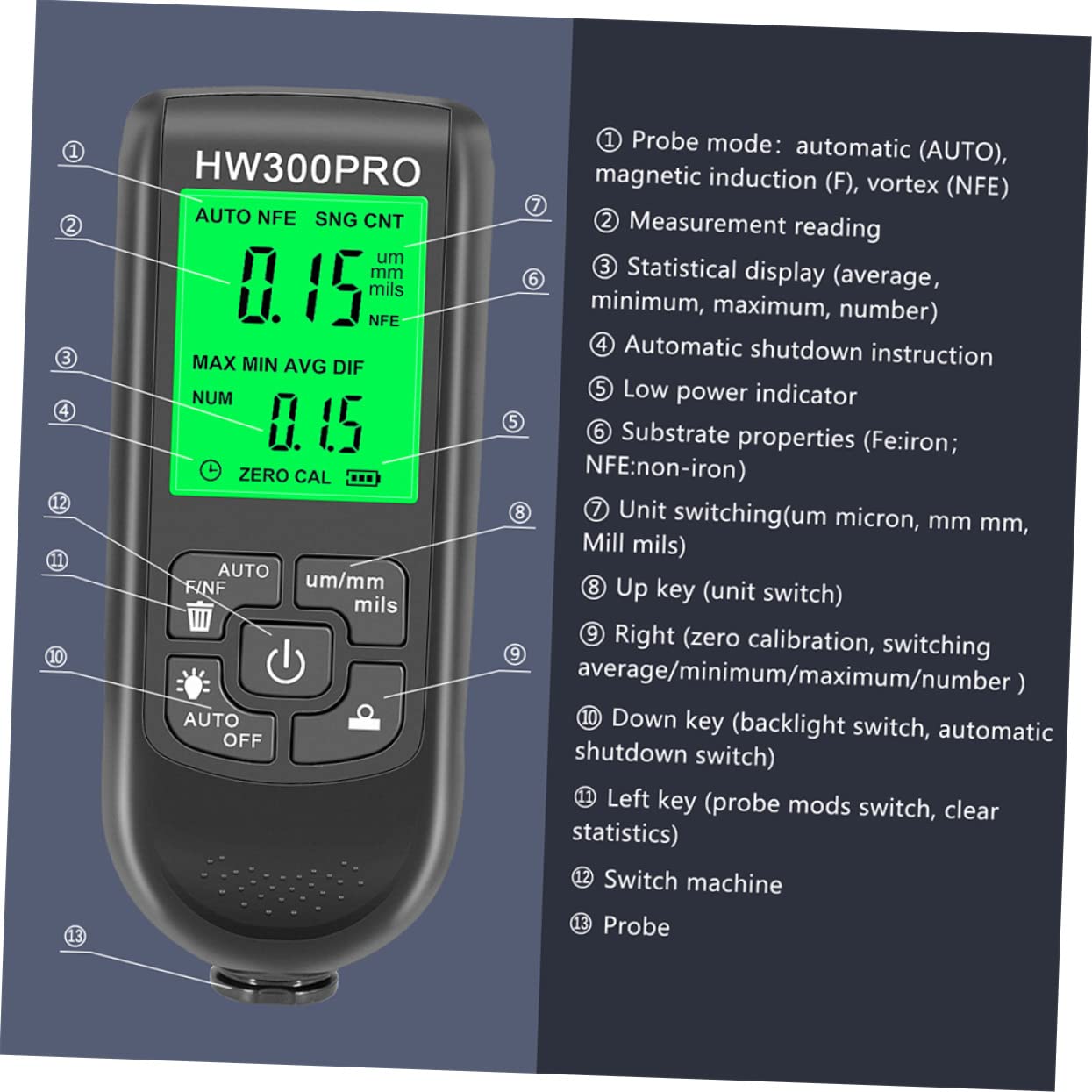 Package List 2 x gauge 2 x manual 2 x calibration sheet Features -Material:ABS, electronic components paint meter for cars - Color: Black paint coating thickness gauge - Size: 12.20X5.00X2.20cm/4.79X1.97X0.86in paint meterGoods Informationpaint meter That's because our product can meet your need.paint gauge thickness meter It is not easy to get deformed and bring you much convenience.car paint tester If you are looking for a professional and gauge, then your research is over here.paint detection Adopted of , it is practical and for long time use