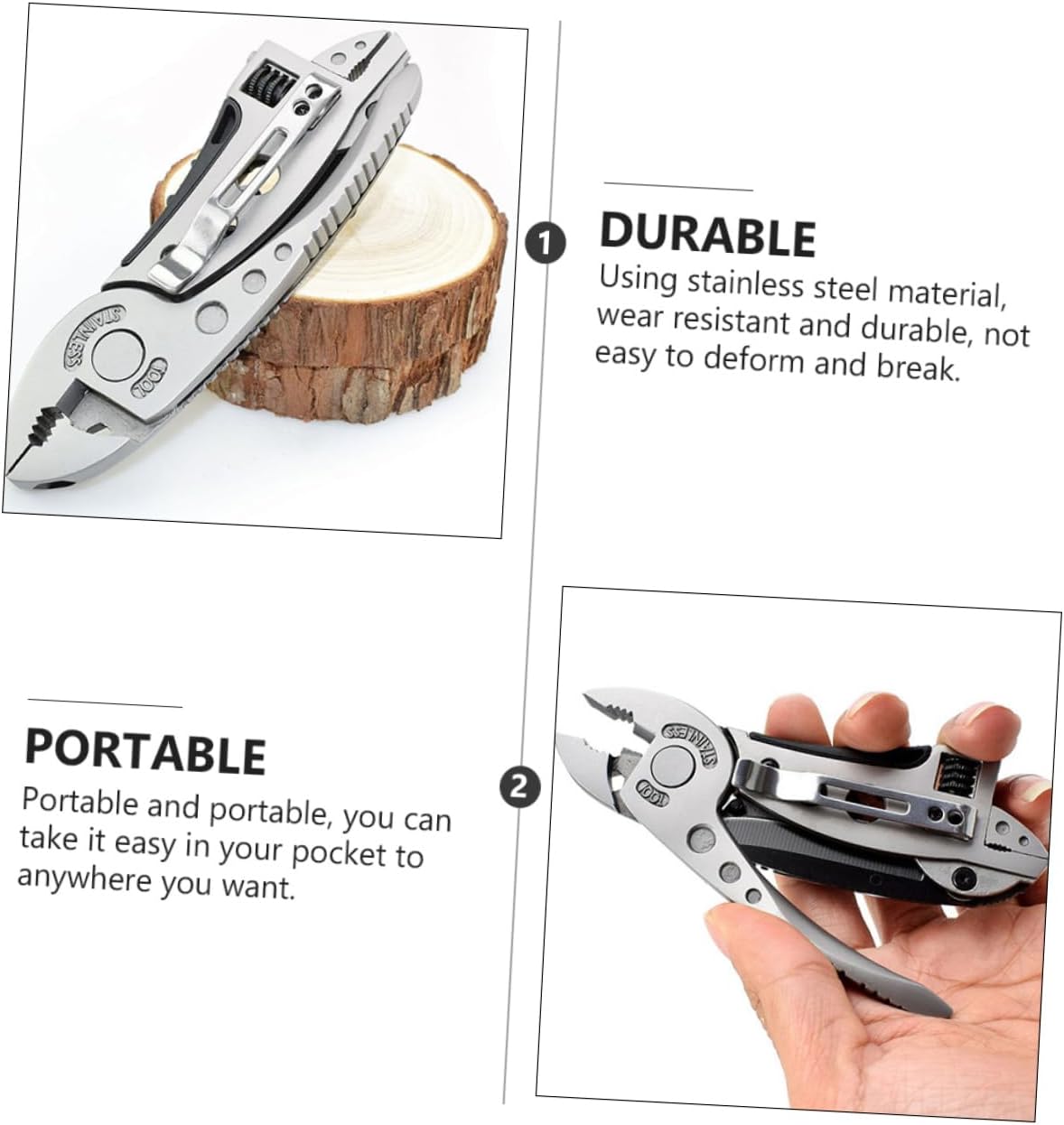 Package Include 2 x Pliers Characteristics - Material: Stainless steel Pliers. - Color: Silver Multi Purpose Wrenches. - Size: Approx. 12.50X4.00X1.00cm/4.91X1.57X0.39in Multi Purpose Wrench. - Portable and portable, you can in your pocket to anywhere you want Tool. - It can be used as tools such as pliers, , screwdrivers, etc Pocket Pliers. - Versatile pliers, bring much convenience to you Wire Cutters. - Suitable for travel, camping, fishing, , DIY repair projects or everyday use Camping Pliers. - Using stainless steel material, wear-resistant and durable, not easy to deform and break Camping Supplies.Goods InformationCamping Supplies You can in your pocket to anywhere you want, suitable for emergency equipment and camping tool. Emergency Gear This product is a pliers set, made of stainless steel material, and durable. Tool You deserve to have one set
