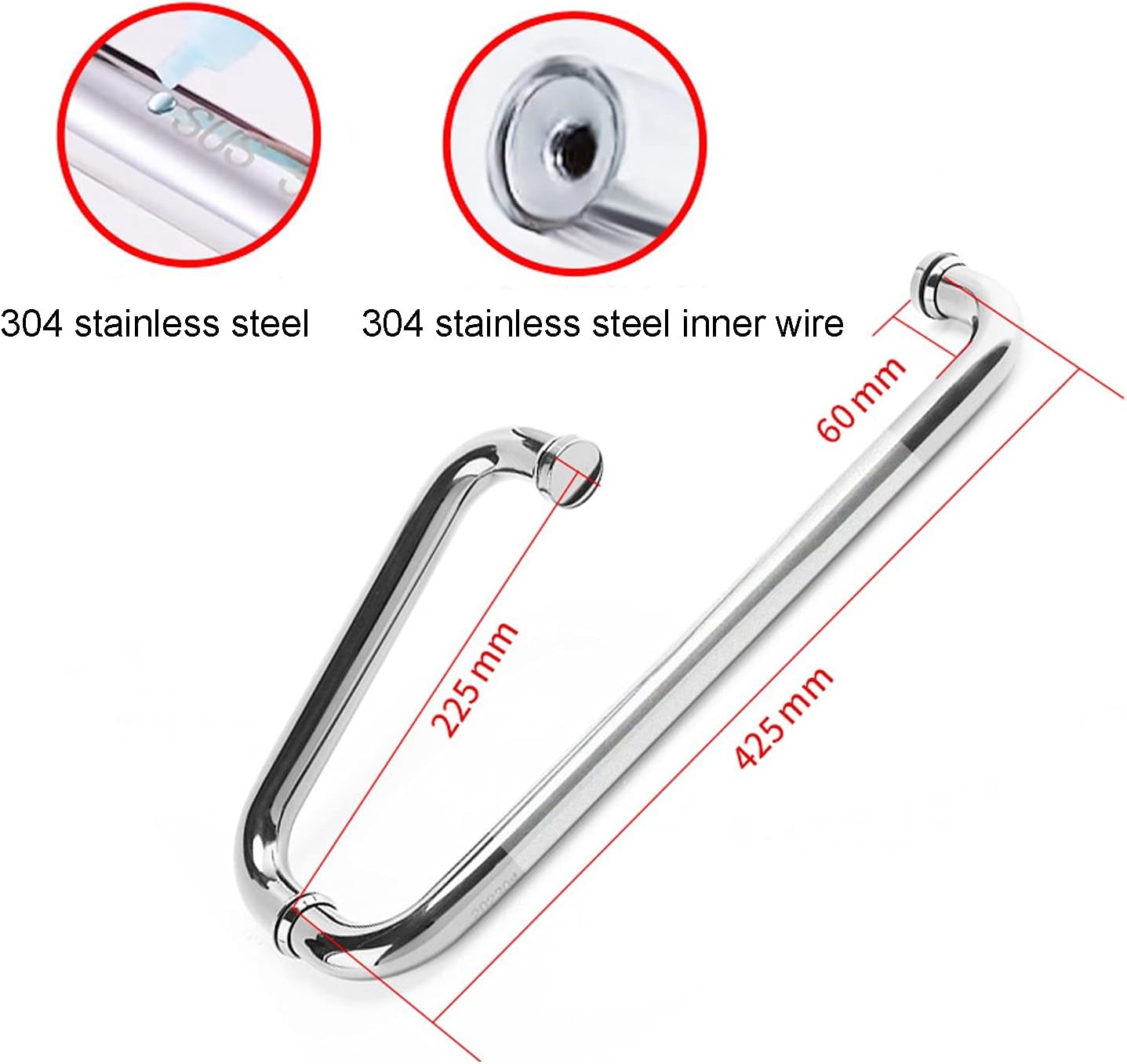 304 Stainless Steel Push Pull Door Handle for Glass Door, Bathroom Sliding Glass Door Handle Set - Replace Old or Damaged Door Handles (Size : 225mm+425mm)