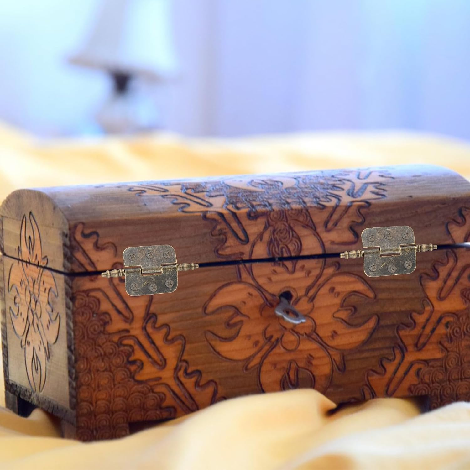 Product details: Product Name: Retro Hinge Product size: 10 x 7 x 1 cm Product Weight: 80g Specifications: 73 x 35 mm Colour: bronze Style: classic retro Finish: coated Material: zinc alloy and iron Number of pieces: 4 pieces Maximum load: 10 kg. Number of holes: 6 Product features: 1. This hinge perfectly combines retro beauty with excellent working performance. 2. Made of high quality zinc alloy and iron, it is corrosion resistant and rust resistant, strong and durable. 3. It has a wide range of applications, suitable for doors, cabinets, wooden crates, etc.