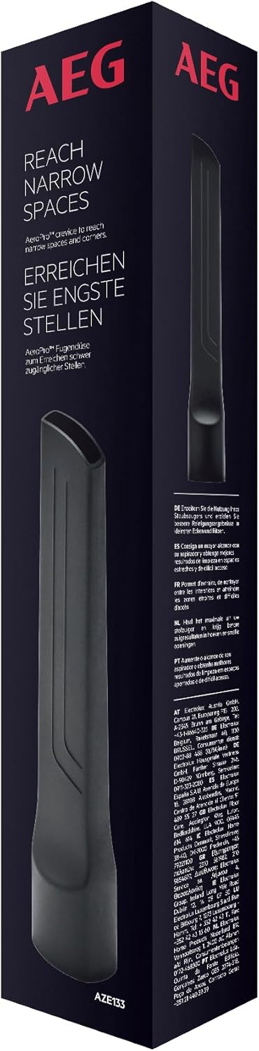 AEG AZE133 Crevice Tool: 27 cm long crevice tool for AEG vacuum cleaners with 36 mm oval tube. Effectively and effortlessly free your home and car from dirt that can be found in hard-to-reach, narrow areas such as cracks, niches and joints. The perfect accessory for your vacuum cleaner. Kit contains: - 1 x crevice nozzle. Suitable for: ULTRA series vacuum cleaner with 36 mm oval tube (VX8-3-DB-P, VX8-3-WR-M, VX8-3-FFP, VX8-3-FFPX, VX8-1-ÖKO, VX8-3-ÖKO, VX8-4-ÖKO, VX8-4-CR-A, VX82-1-4MB, VX88-4-ÖKO. 2-1-1-OKO, VX82-1-5DB, VX82-1-ANI, VX82-1-ALR, VX9-2-FFP, VX9-2-ÖKO, VX9-2-ÖKOX, VX9-2-CR-A, VX9-4-ÖKO, VX9-4-ÖKOX, VX9-4-8IBM, VXX99-4-89IBX, VX9-4-ANIM, LX8-2-ÖKO, LX8-2-ÖKOX, LX8-2-CR-A, LX82-1-ÖKO, LX82-1-ALR, LX9-2-WR-P, LX9-3-ÖKO, LX9-3-STM and much more.)
