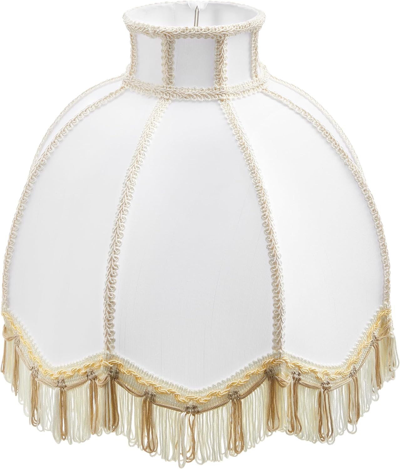 Aspen Creative Item #30306A Aspen Creative offers a 1-pack Scallop Bell-Shaped Spider Lamp shade in Off-White that will enhance your living space.Shade Dimensions: 6" Top x 17" Bottom x 12" Height The shade is made with a spider construction, this allows the shade to sit perfectly centered on a lamp harp attachment. It is compatible with a saddle base, and uno slip-on base lamp harp or a bulb clip adapter.Crafted with precision and attention to detail, our lamp shades are made with high-quality materials that are built to last. They are made to withstand daily use while still maintaining their shape and beauty.This product is suitable for a wide range of lighting options including table lamps, accent lamps, vintage lamps, candle stick lamps, kid's room lamps, bedroom lamps, bedroom table lamps, night stand lamps, reading lamps, bedside reading lamps, living room end table lamps, bedroom night stand lamps, and pendant lights.