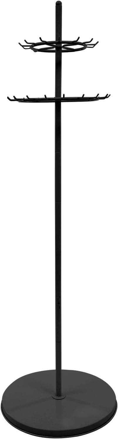 ApplicationThis product is suitable for home and commercial use in boutiques, clothing stores, retail stores, jewelry stores, and craft fairs to organize and display shoelaces, belts, scarves, and more.SpecificationMaterial: SteelColor: BlackProcess: Welding, Grinding, High-temperature BakingStyle: ModernAssembly Required: YesMounting Type: Free StandingRecommended Uses: Tie& BeltNumber of Hooks: 31Product Height: 168cm/66.1inBase Diameter: 50cm/19.7inThe First Tier Diameter: 31cm/12.2inThe Second Tier Diameter: 41cm/16.1inPackage Size: 52*52*12cm/20.47*20.47*4.72inEach Tier Load Capacity: 10-20kg/22.05-44.09lbsGross Weight: 5.5kg/12.13lbsNet Weight: 5kg/11.02lbsPackage Included1* Belt Display ShelfOther Accessories for AssemblyNotes1. Please note that this product does not include any of the display items shown in the picture.2. Please use this product within the load-bearing range to avoid collapse.
