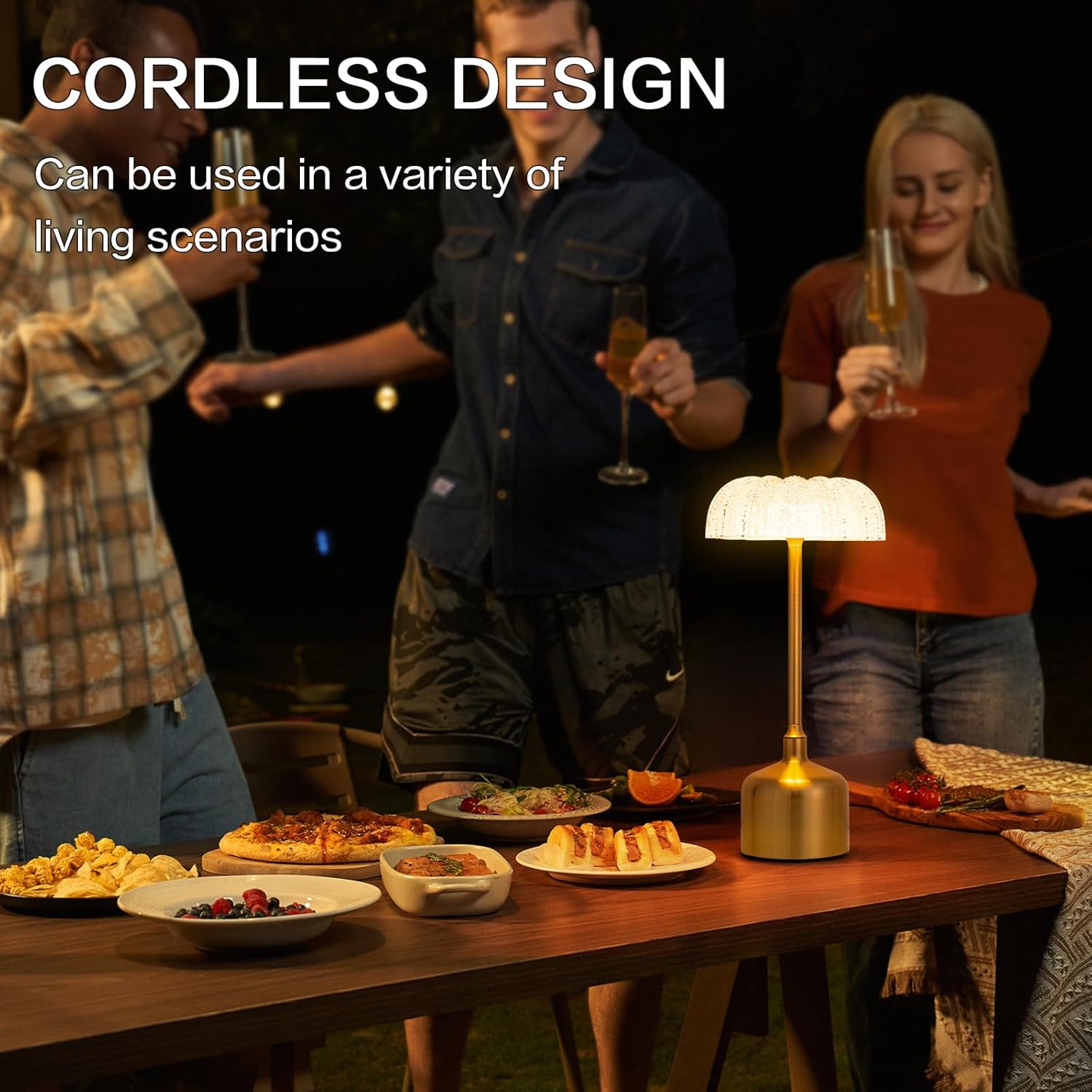 • 【Portable Table Lamp】Move It Anywhere ! The size of this gold table lamp is moderate, perfect even in small spaces. This is a portable cordless desk lamp which is convenient to move ! Whether you put it in your bedroom, living room, dining room or kitchen, even outdoor.