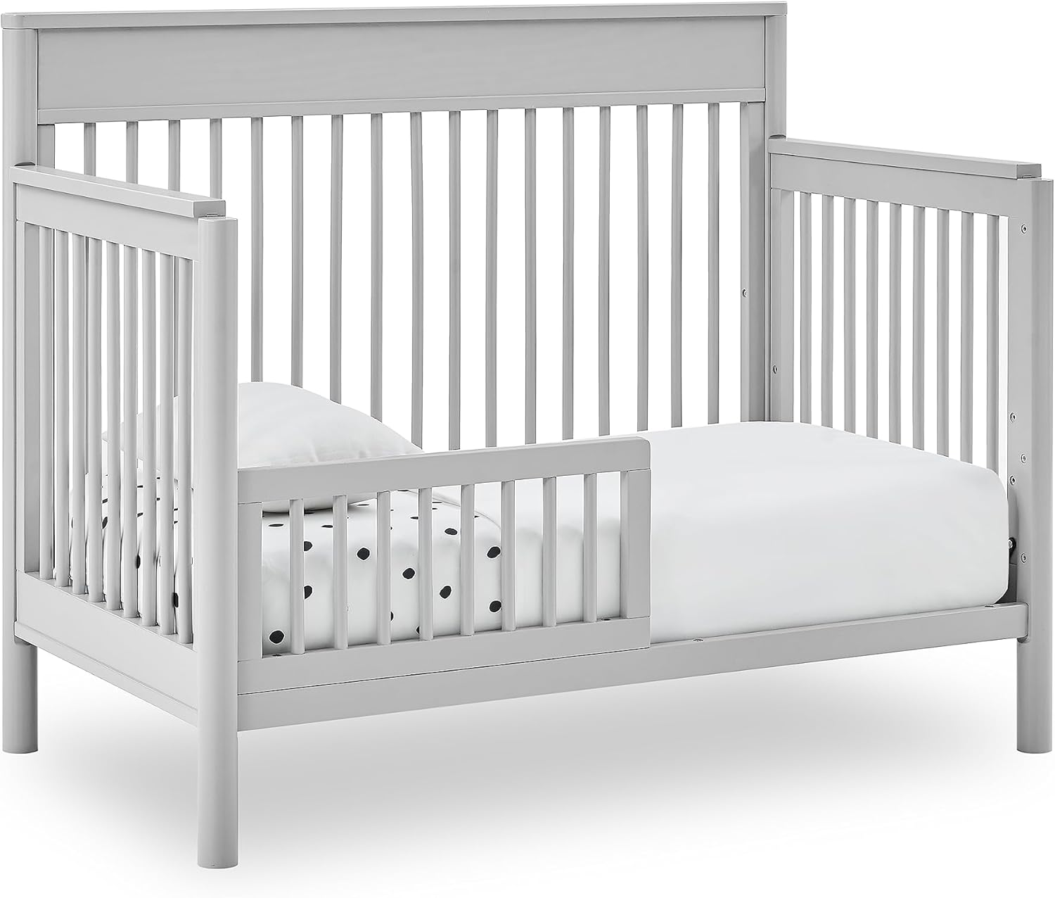 The Remy 6-in-1 Convertible Baby Crib by Delta Children will instantly elevate your nursery with its mid-century modern style. Clean lines, playful round spindles and cylindrical posts define this beautiful crib. Built to grow with your child, the Remy features an adjustable height mattress that can be lowered as baby begins to sit or stand, plus it converts from a crib to a toddler bed, daybed, sofa, and full size bed with and without footboard.