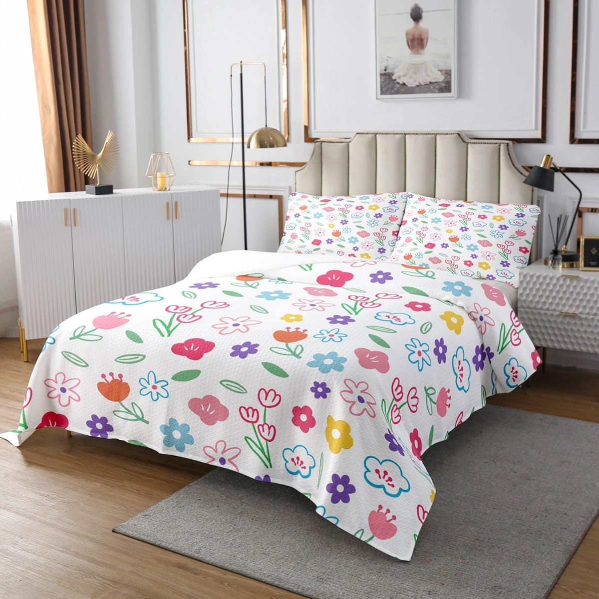 Size information: Twin size include 1 quilted bedspread(68"Wx90"L) and 2 quilted pillow shams(30"Wx20"L) Queen size include 1 quilted bedspread(90"Wx90"L) and 2 quilted pillow shams(30"Wx20"L) King size include 1 quilted bedspread(104"Wx90"L) and 2 quilted pillow shams(36"Wx20"L) Makeover your bedrooms all season with this bedspread set: A quilt set for home dorm room decor for kids teen girls boys youth.practical to use for being polyester,feels like cotton which is soft and breathable Vivid colors won't fade thanks to new 3d digital printing methods.these novelty designs coverlet set match well with various color palettes of your other home decorations Expertly crafted with digital printing technology, these home textiles feature the trends in contemporary home fashion. Either to your friend or to yourself,the item is funny and interesting Please note: The bedspread and pillow shams are printed on the front side only,the back of bed set bedding set are white colored.comforter is not included in the set