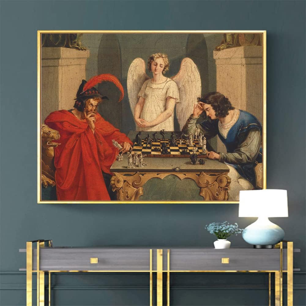 Faust And Mephistopheles Playing Chess Print Poster Vintage Painting Canvas Prints Wall Art Painting Posters and Prints Wall Decor Cuadros Home