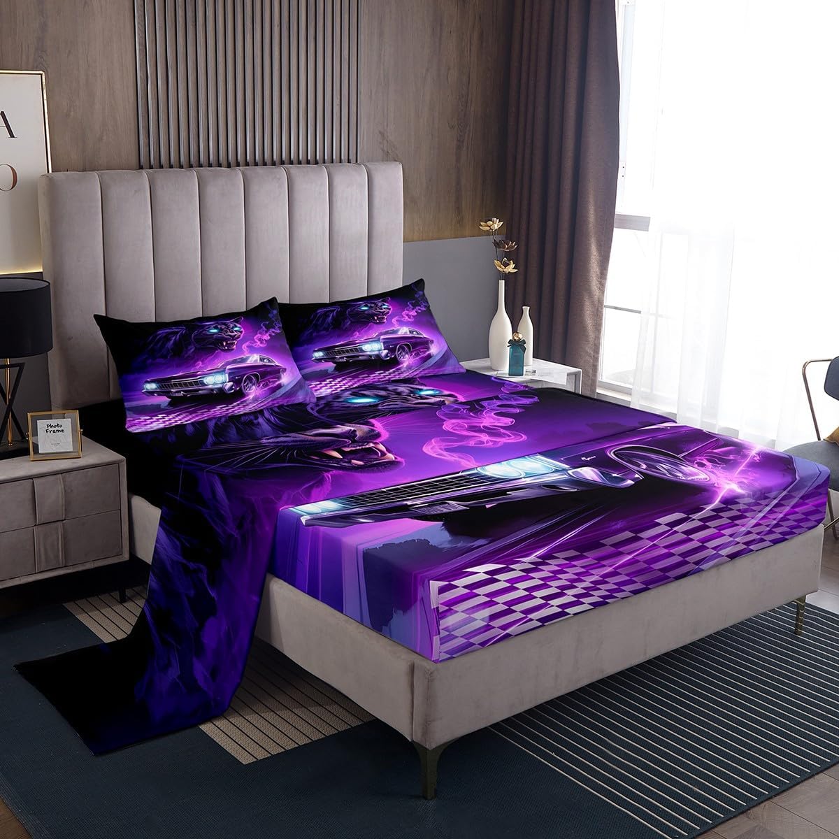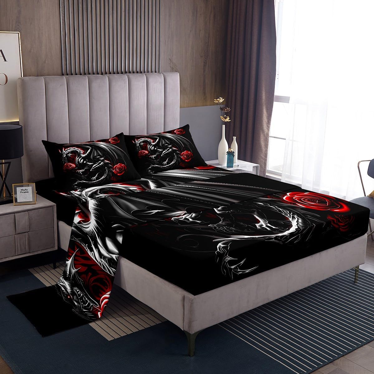 Our bedroom decor bed sheets set look with the vivid stylish and elegant print specifications: Twin Sheet Set: 1 twin fitted Sheet 39 inch x75 inch x16 inch, 1 twin flat sheet 66 inch x96 inch and 1 pillowcase 20 inch x30 inch Full sheet set: 1 full fitted sheet 54 inch x 75 inch x 16 inch, 1 full flat sheet 81 inch x 96 inch and 2 pillowcase 20 inch x 30 inch Queen sheet set: 1 queen fitted sheet 60 inch x 80 inch x 16 inch, 1 queen flat sheet 90 inch x 102 inch and 2 pillowcase 20 inch x 30 inch deep pocket fitted sheet with elastic all around materials: microfiber fabric, lightweight and soft design: With vibrant and novelty designs and 3d print technique, this duvet cover is very suitable as room decor for boys and girls care instructions dry clean preferred; machine washable, use cold water on gentle cycle, tumble dry low