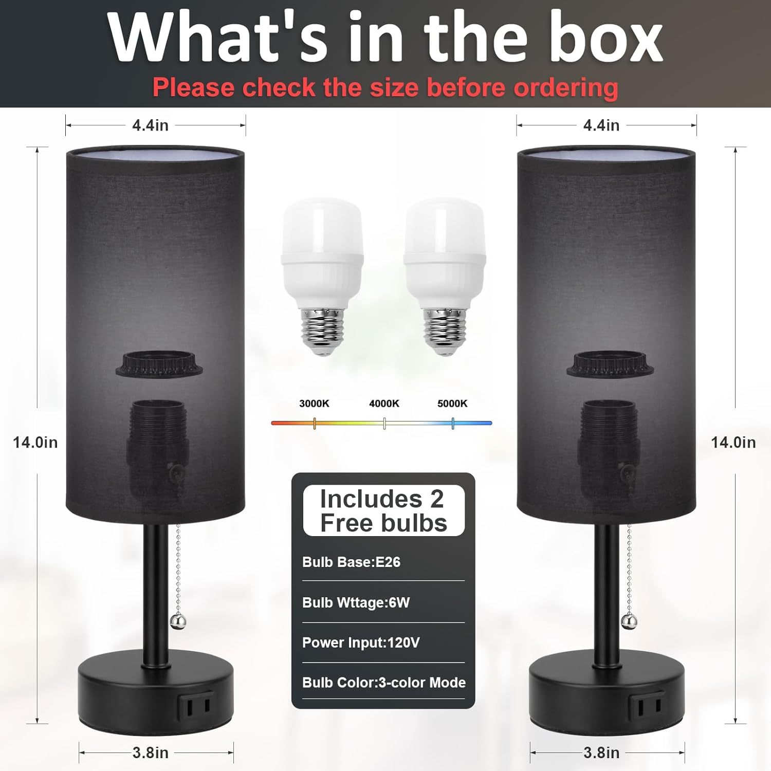 | Style Name | Cream + Black Bedside Table Lamps Set of 2 |