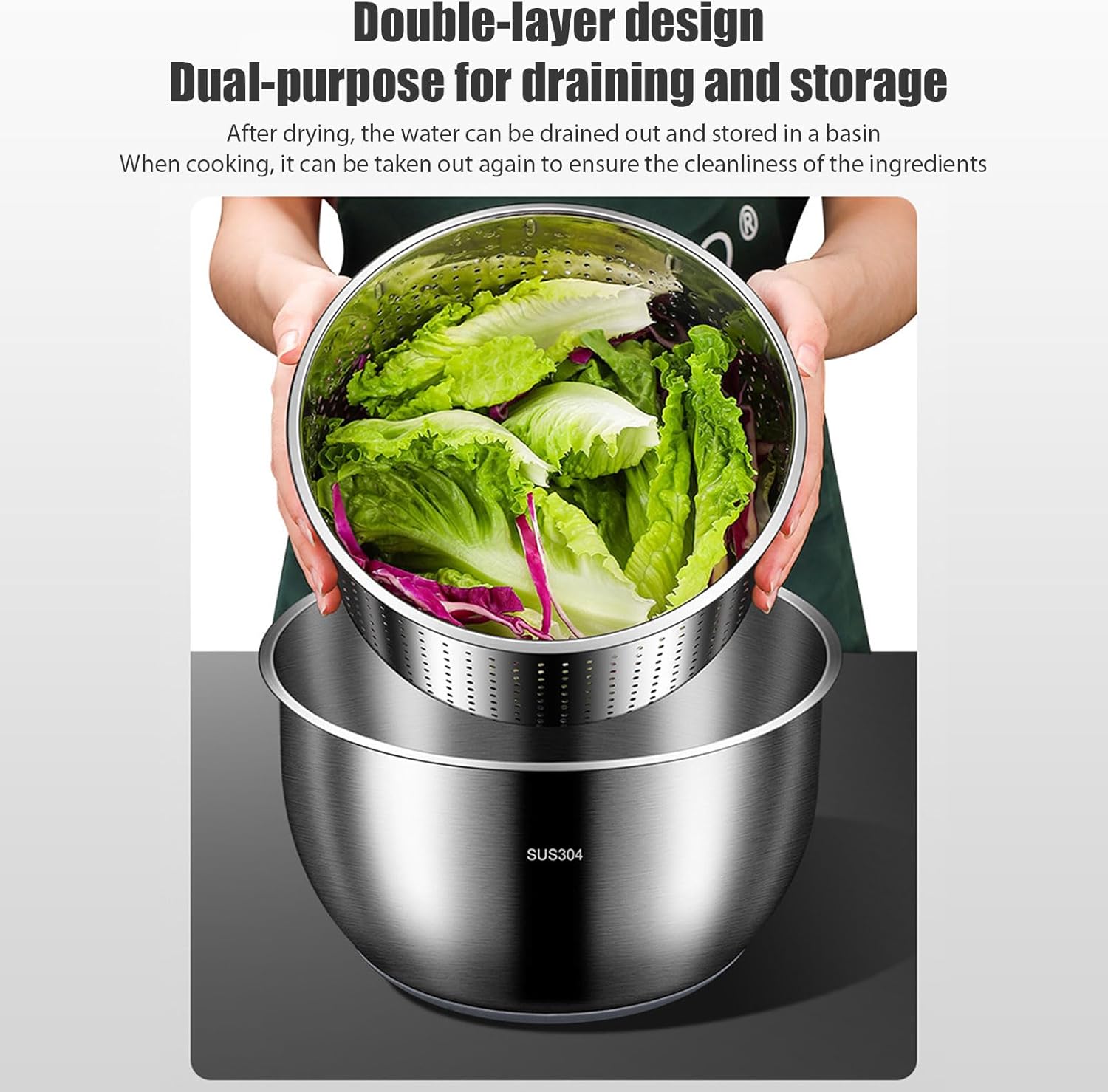 Food Grade And Stainless Steel Vegetable Dryer For Efficient Kitchen Use With Locking Clips Features: Spacious 6L Capacity: This 304 stainless steel salad spinner holds ample fruits and vegetables for efficient washing and drying, perfect for food preparation and home use Secure & consistent Build: Made with food grade and premium 304 stainless steel, featuring a stable silicone base for steadiness and easy Quick Drying Function: Easily from greens and fruits in seconds, crisp salads without residual water or mess Versatile Kitchen Tool: Ideal for produce including salad greens, aromatic bushes, berries, and larger vegetables, meeting various cooking needs Simple maintenance: The firm clip design reduces splashing and maintains kitchen tidiness, while the compact shape allows storage Specifications: Substance: constructed of good-quality 304 stainless steel, with excellent oxidation resistance and long-lasting service life Craftsmanship: Finely, the face is smooth and easy to, ensuring food Size: diameter 250mm, height 180mm, moderate capacity, suitable for daily use at home selling characteristics: Available in silver fashion, traditional design, suitable for various kitchen styles Practicality: Efficient dehydration design can easily remove excess from the face of vegetables and keep the ingredients It is suitable for various kitchen scenarios such as salad making and fruit and vegetable Package Includes: Salad spinner×1 Note: Before using the accessory, please check it is compatible Pay attention to the storage methods