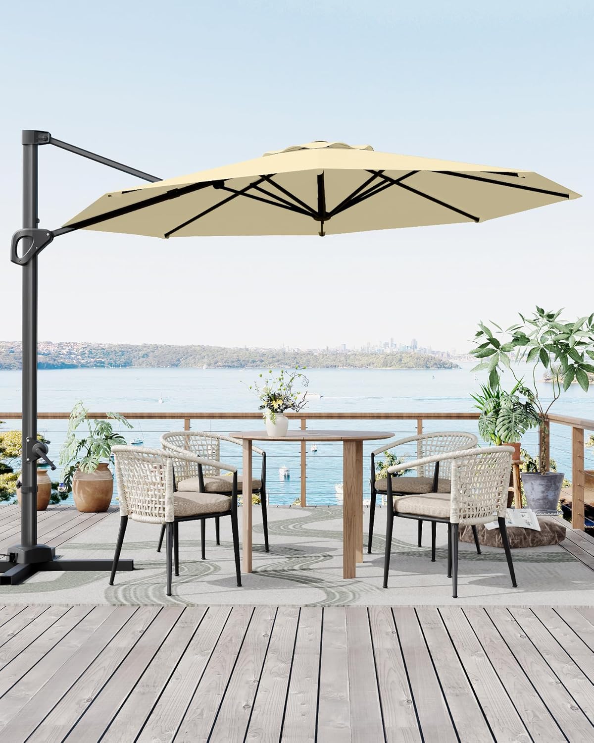 GarveeLife 10FT Cantilever Umbrella Outdoor Patio Umbrella w/Base Included Market Offset Umbrella Sun Shade Windproof with 360-Degree Rotation for Patio Garden Deck Pool, Beige