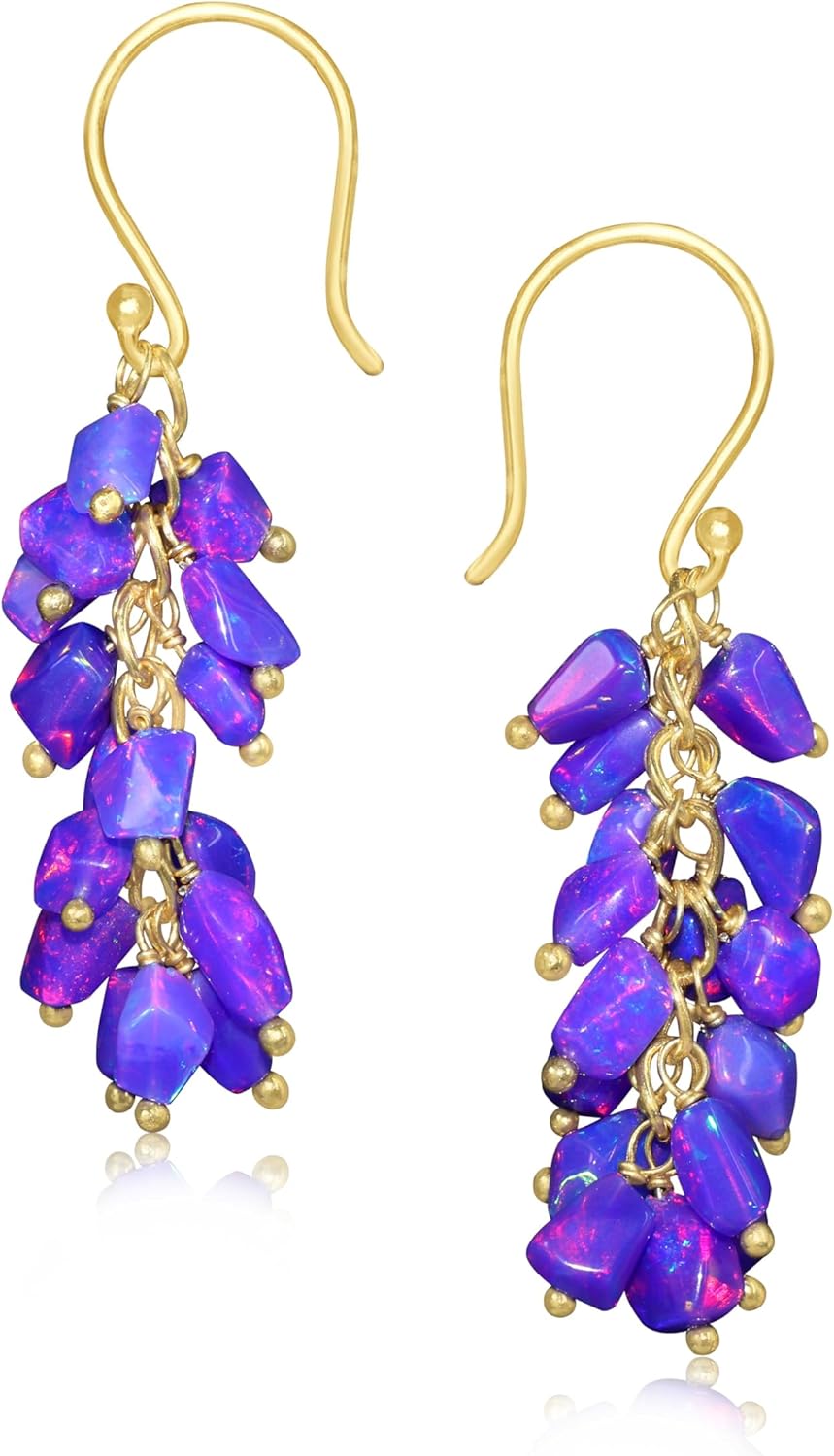 Celebrate elegance, individuality, and meaningful craftsmanship with the GOODSTONE JEWELS Black Opal Cluster Dangle Drop Earrings for Women. Designed to make a bold yet graceful statement, these earrings feature an enchanting display of natural multicolor fire opals, carefully arranged in a cluster pattern that captures the eye with every movement. Known as the October birthstone, black opal symbolizes intuition, creativity, and protection making it a deeply meaningful gift for any occasion. Expertly handcrafted in 925 Sterling Silver and luxuriously coated in 18K yellow gold plating, these opal earrings offer lasting shine, durability, and hypoallergenic comfort. Their high-polish finish and nickel-free design make them suitable for sensitive ears, allowing you to wear them with confidence all day long. Whether dressing up a casual outfit or adding glamour to a formal ensemble, these dangle drop earrings bring sophistication to any look. Perfect as a birthday gift for October-born women, a wedding or anniversary present, or a thoughtful gesture for an engagement, these earrings come in elegant packaging, ready to gift. Their timeless design makes them an excellent choice for bridesmaids, mothers of the bride, or anyone who loves fine jewelry with a touch of sentiment. At GOODSTONE JEWELS, we are committed to creating jewelry that blends traditional craftsmanship with modern elegance. Each piece is ethically sourced and individually inspected to ensure premium quality. These black opal earrings are more than just accessories, they're keepsakes designed to celebrate life’s most beautiful moments. Add a touch of magic to your jewelry collection with these stunning black opal cluster drop earrings where luxury meets meaning, and beauty lasts forever.