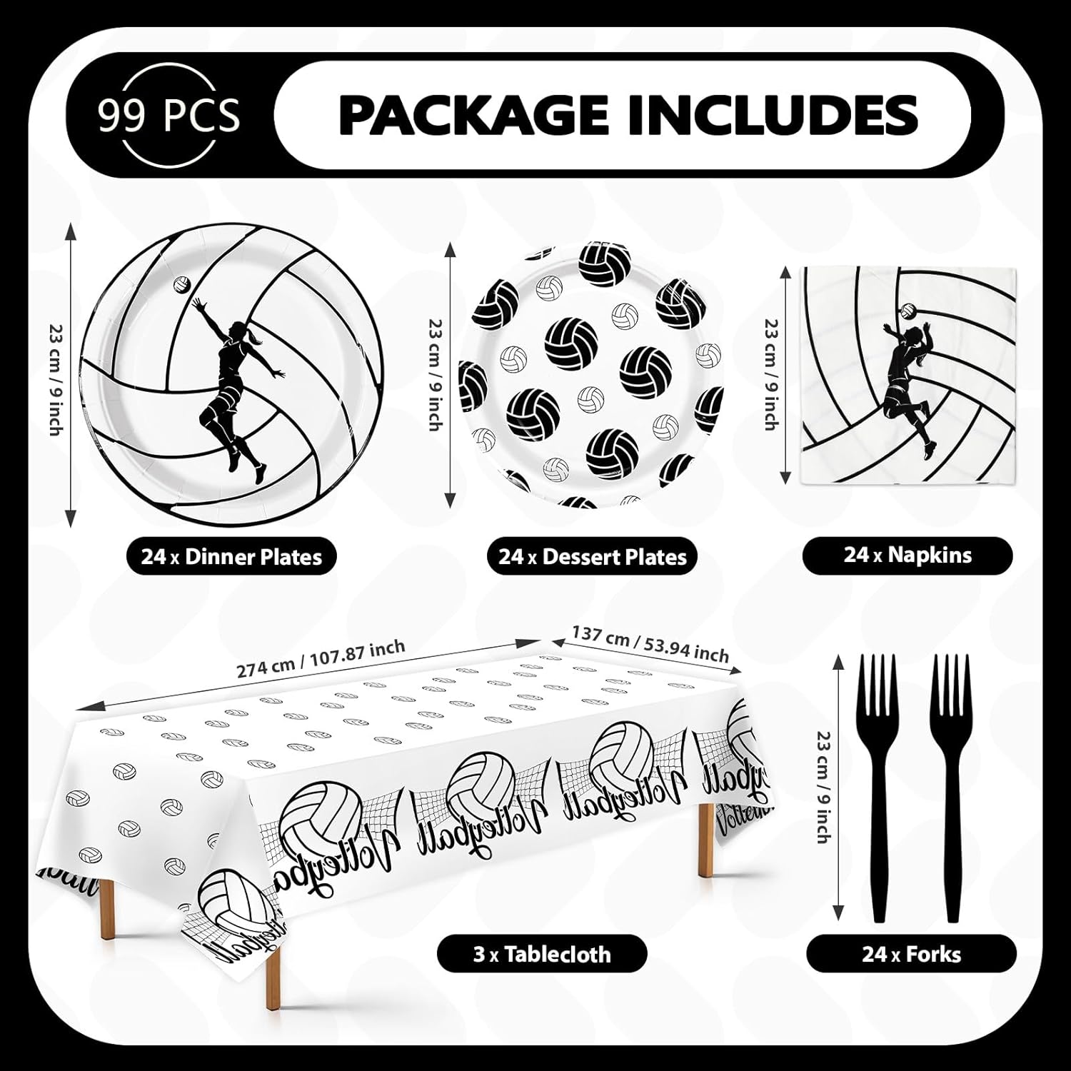 Grencian 99Pcs Volleyball Birthday Party Supplies 96Pcs Volleyball Paper Plates Napkins Forks 3 Pcs Tablecloths Sports Theme Party Disposable Tableware for Girls Birthday Decorations Serves 24