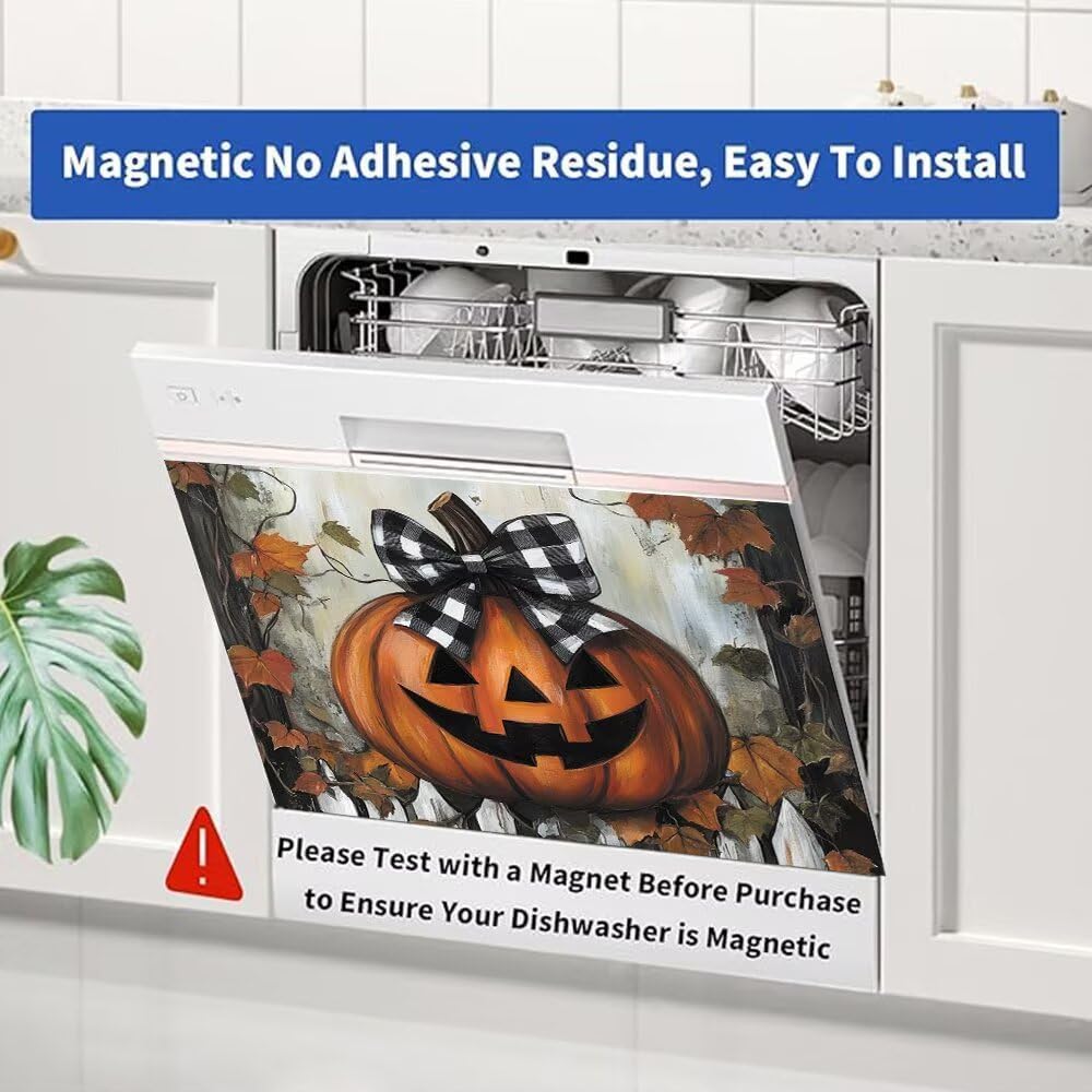 Happy Halloween kitchen dishwasher magnetic cover is not only a sticker, it's magnetic art, adds style with a cozy feeling.Widely Used: Works on your garage doors, refrigerators, mailboxes, school lockers, school buses, dry erase boards, dishwashers, any metal-enclosed appliances, anywhere magnetic, etc. Easy to clean, wipe with a damp cloth or hand wash in cold soapy water and air dry.Installation Suggestion: Ensure that the stickers are smooth before installation for a firm adhesion. Can be rolled up in reverse or pressed flat.Kitchen Dishwasher Covers Size: S - 23 W x 17 H inches; 58.5 W x 43 H cm;L - 23 W x 26 H inches; 58.5 W x 66 H cm;Note: For magnet orders please check your appliance surface with a magnet prior to order to make sure it is sticking. Magnetic dishwasher door covers do not fit on stainless steel surfaces.Note: If you have any questions about the product, please feel free to contact us to deal with the problem. We provide 100% satisfaction