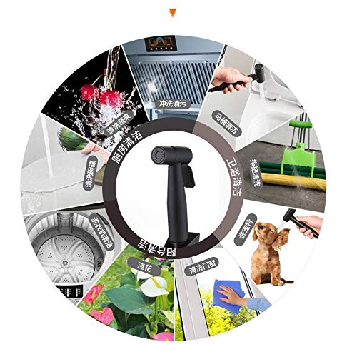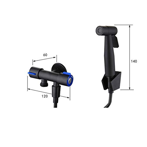 : angle valve + spray gunBody material: stainless steelFunction characteristics: handle controlSurface treatment: matt blackCommodity spool: ceramic spoolScope of application: bathroom, balconyToilet companion/innovation/environmental protection/convenient/practical.All are made of SUS304 stainless steelNo longer bend down and get involved, the internal pressure design is strong and the water is clean and clean.The -shaped water outlet has a pressure-increasing design inside, and the amount of water sprayed from each small nozzle is exactly the same. The water is strong and not easy to be blocked, and it is clean after a flush.The handle is ergonomic, the grip is smooth and comfortable, heat insulation, anti-scalding, and not easy to slide. The switch is flexible and easy to operate.Es cómodo y rápido, ya que cambia de agua pura y cruda en cualquier momento.