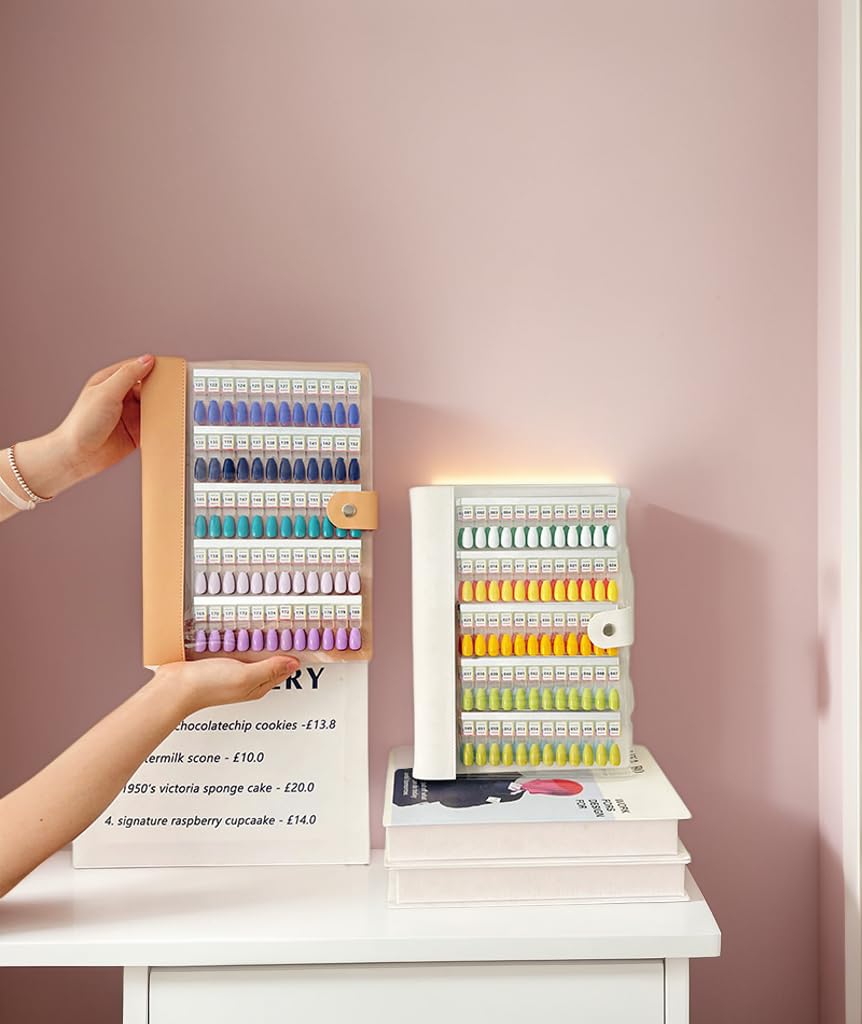 Keep your gel polish collection beautifully organized with our Magnetic Nail Swatch Book—designed for nail professionals, beauty influencers, and home manicure lovers. This display book offers 120 slots for swatch tips, allowing you to visualize your color options with ease. The magnetic closure is secure and convenient, while the included label stickers help keep your collection neatly cataloged. Whether you’re prepping for clients or sharing nail art ideas online, this stylish and practical color chart helps you stay creative and organized. It’s more than just a swatch book—it’s a showcase of your nail artistry. Feature: 1.Easily previewnail colors with magnetic handles for precision 2.Detachable tipseliminate surrounding color interference 3.Transparentcover protects nails from dust and damage 4.Magnetic acrylicboards hold nails firmly 5.Stylish anddurable design keeps your nail swatches organized 6.Includes 120/180/240/360 number labels for fast, efficient color coding 7.Perfect forprofessionals and home nail artists alike Product Specifications: Color: White,Apricot, Gradient Red, Gradient Dark Blue, Gradient Blue Product Type: NailArt Display Board Material:Pvc+Transparent Acrylic+Magnetic Package Dimensions:36*30*6 CM /14.17 * 11.81 * 2.36 IN Weight: 120 Style:1kg /1.1 LB 180 Style: 1.1kg /2.43 LB 240 Style: 1.2kg /2.65 LB 360Style: 1.3kg /2.86 LB Package Includes: 1Set *MagneticNail Swatch Book 1Set*Nail Art Pen Note: 1. Due to manualmeasurement, please allow a difference 2. Due todifferences in monitors and lighting, the pictures may not show the actualcolor of the item. Thank you for your understanding