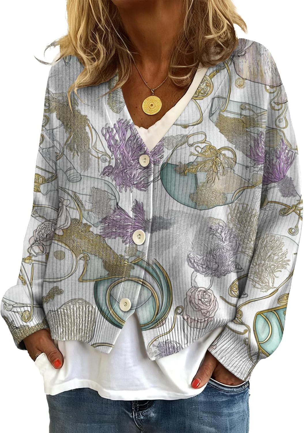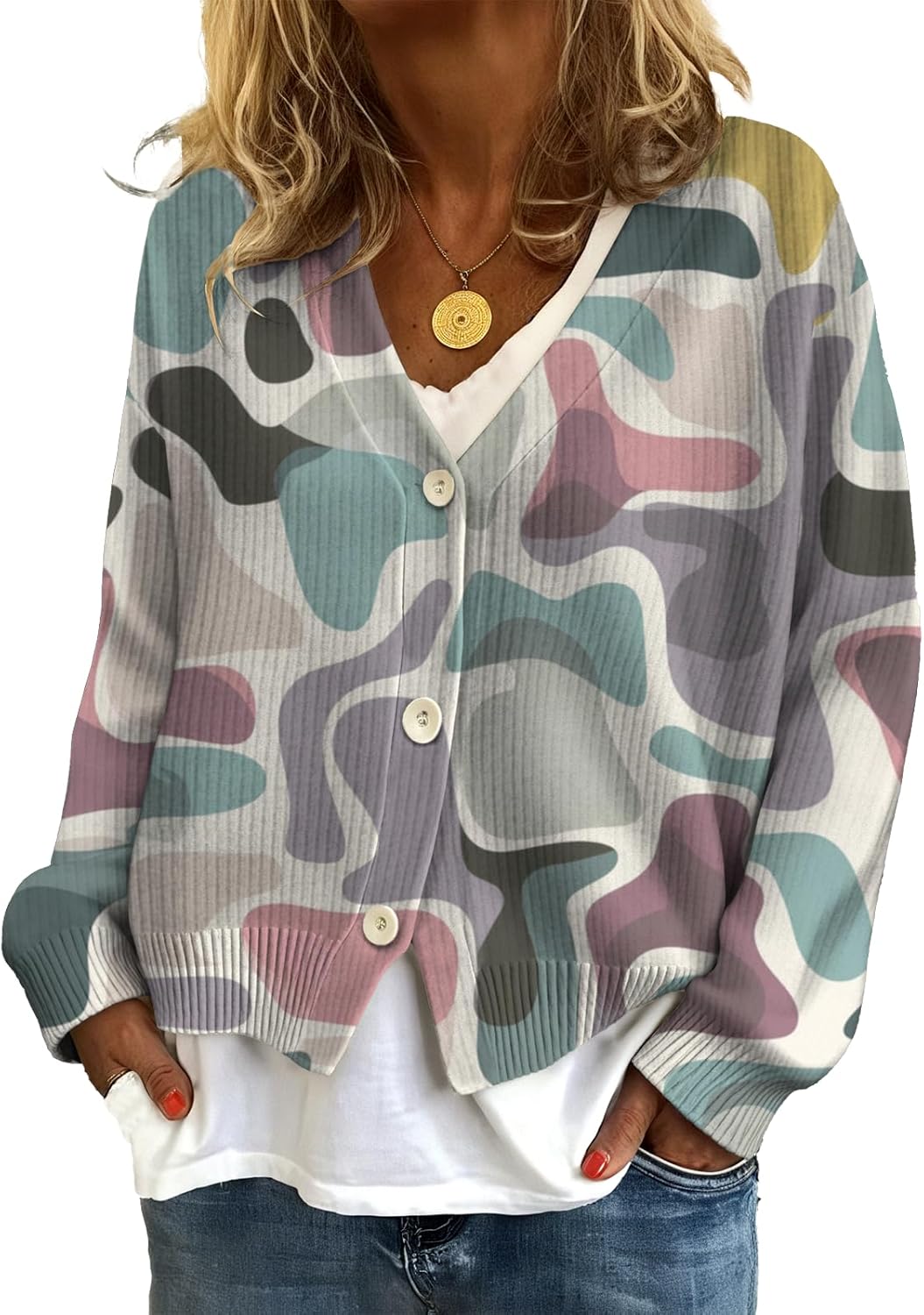 MARSVOVO Classic Button Down Sweaters for Women Loose Fit Comfy Lightweight V Neck Long Sleeve Elegant Fall Sweater Fashion Knit Dressy Casual Basic Spring Cute Cardigan