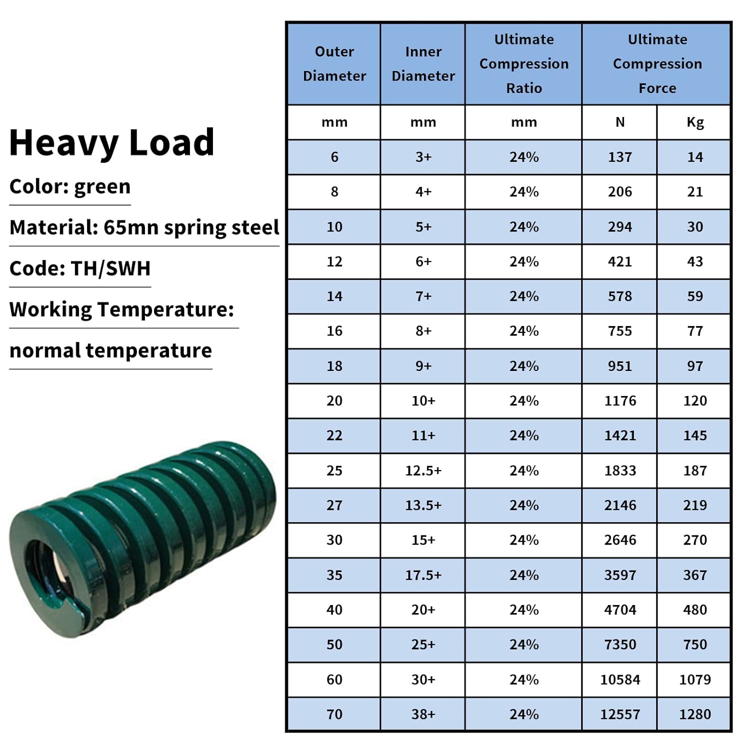 Is a professional supplier of various hardware products. There are a variety of different sizes and different colors of mold springs in the store. Each color represents a different load-bearing load and is suitable for different occasions. We believe that higher quality and lower cost can help our customers save time and money. Please confirm the product size when purchasing. Mold springs are harder than regular springs, which helps your 3D printer be more stable when printing.Generally speaking, there are yellow, blue, red, green, brown springs sorted by different load,die spring is the YELLOW one, which is the lightest load one.Yellow means the load level islighter load;Blue means the load level is light load;Red means the load level is middle load;Green means the load level is heavy load;Brown means the load level is overweight load.Unscrew the adjustment knobs from the bottom of your print bed.And replace those stock springs with these new ones.Screw the adjustment knobs back into the print bed with these new springs.Then you're free to go! Level your bed and keep on printing.These springs may seem trivial, but the springs used on 3D printers can improve print quality and stability. Rectangular Section, strong, keeps print bed level better. The heatbed springs are well suited for high stress applications, but also suitable for various of other applications. Compatible with most 3D Printer Bed. QUICK AND EASY INSTALLATION Die Spring Outstanding Performance Application Feature