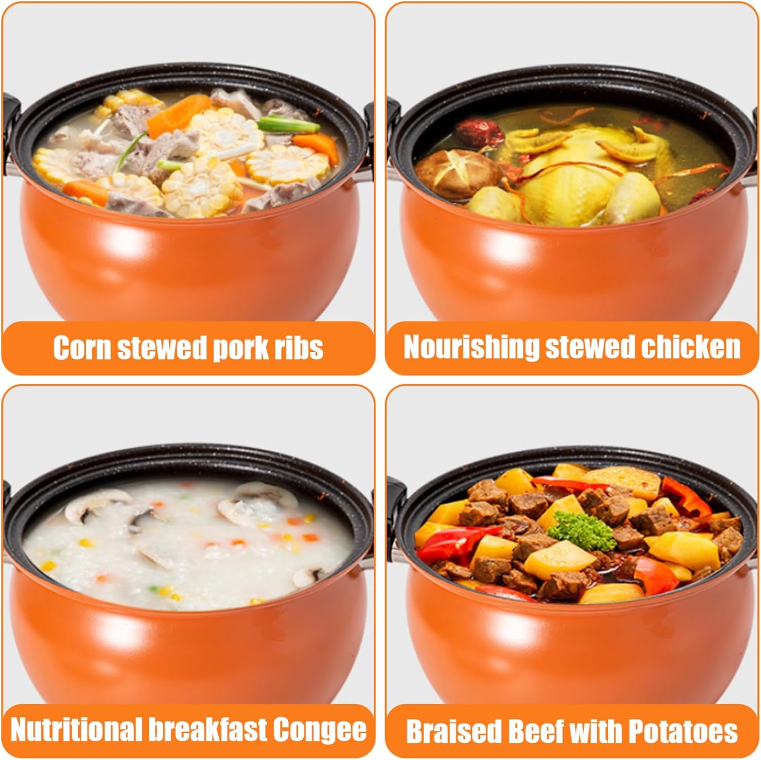 Description: This 8-liter mini pressure cooker is the ideal kitchen companion for quick, efficient and tasty cooking. With a secure lockable handle and non-stick interior, it is perfect for everyday meals.. Features:.. -Color: Orange.. -Material: Iron.. . -Size: 37.5x20 cm/14.76x7.87 inches.. -Capacity: 8L.. -Applicable: Open flame stove, induction cooker, electric ceramic hob.. -Applicable spatulas: wooden spatulas, silicone spatulas... Note: Manual measurement, please allow slight errors on size.. Colors may exist slight differences due to different displays.. Package including 1 * Mini Pressure Cooker