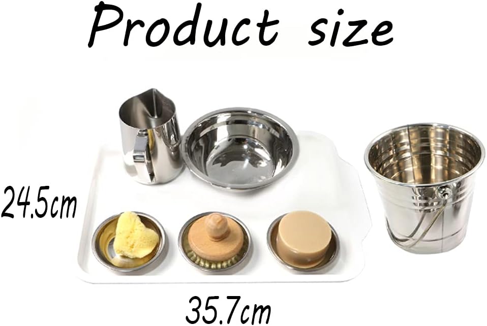 Montessori daily life teaching aids: wash the table and work, children develop environment creators, let children clean the table from elementary school, clean the environment, and develop a habit of loving cleanliness Material: The product uses stainless steel, plastic, sponge, etc., bottom plate size: 35.7 cm * 24.5 cm, suitable for age: children over 2 years old Teaching aids include: 1 iron bucket, 1 tray, 1 kettle, 1 cleaning basin, 3 small dishes, 1 natural sponge, 1 brush and 1 soap Use scene: suitable for family living room or bedroom, creating a Montessori environment, suitable for kindergartens, early education centers, nurseries, parent-child gardens and other early education and childcare institutions After-sales service: After you receive the goods, if you have any questions, please feel free to contact us, we are committed to providing you with the best shopping experience Montessori Daily Life Teaching Aids: Washing the Table Work Material: stainless steel, plastic, sponge Floor size: 35.7 cm * 24.5 cm Suitable age: children over 2 years old