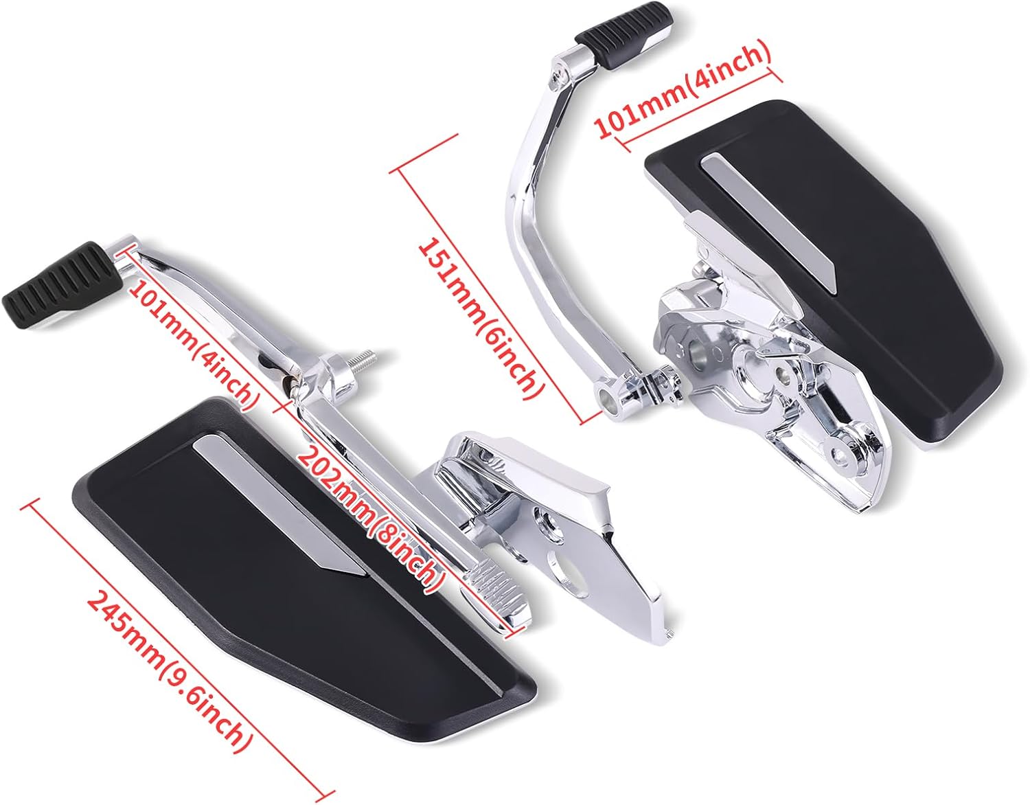 Omni Driver Floorboards with Heel-Toe Shifter for Honda Gold Wing GL1800 (2018-2024)Upgrade Your Ride with Enhanced Comfort & ControlTransform your Gold Wing with these premium floorboards, designed to improve ergonomics, reduce fatigue, and add sleek style. The durable aluminum construction features EPDM rubber inserts for superior grip and vibration dampening, ensuring a smoother ride.Key Features:✔ Fold-Up Design – Easily maneuver in tight spaces while maintaining full access to the kickstand.✔ Spacious Platform – Measures approximately 10" (L) x 4" (W), offering 5x more surface area than stock pegs for maximum comfort.✔ Ergonomic Heel-Toe Shifter – Direct OEM replacement with a heel-shift option and raised brake lever for improved foot positioning.✔ Non-Slip Brake Pedal – Rubber-coated surface enhances traction for confident braking.✔ Fitment – Compatible with both manual & DCT Honda Gold Wing models.Specifications: Material: Aircraft-grade aluminum + premium EPDM rubber Position: Front Included: Left & right floorboards (complete kit) Color Options: Chrome or black (as pictured) Condition: 100% brand new aftermarket Fitment:✔ For 2018–2024 Honda Gold Wing GL1800Elevate your touring experience with these high-performance floorboards—engineered for long-distance comfort and precise control.