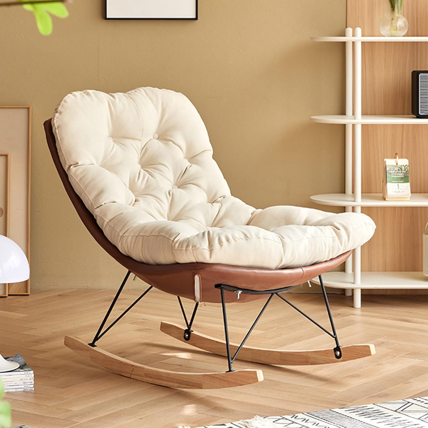 ➤ Elevate your bedroom with a stylish rocking chair designed for both indoor relaxation and outdoor enjoyment. This versatile item moves seamlessly between a cozy bedroom and a garden oasis, providing comfort in any setting.➤ Product specifications:Product name: rocking chairMaterial: Metal + solid woodFilling: doll cottonProduct size: 87cm*90cm*56cmRecommended Uses: Patio, Front Porch, Backyard, Garden, Balcony, Lounge, Living Room➤ Packing List: Rocking chair x1➤ Kind tips:1.Due to manual measurement, please allow 1-2cm error.2.Due to light, display and other factors, there may be differences between the received object and the photo. Please refer to the actual object.3.After-sales service: If you have any questions or missing items during use, please feel free to contact us, we will reply within 24 hours to ensure each customer has a satisfactory shopping experience.➤ Thank you for visiting our store, whether you buy this item or not. If you like something, you can add it to your cart or save it to your collection. If you need to purchase in the future, please check our store anytime.