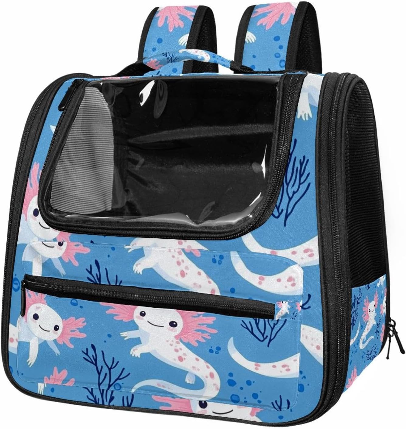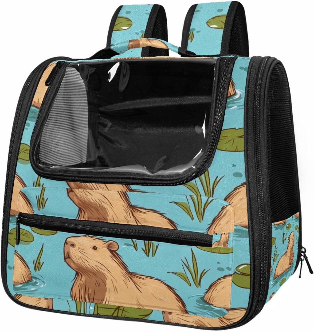 Well made: Cat Backpack Carrier is made from 900D oxford fabric, pp webbing, velvet, nylon, which is very sturdy, environmentally friendly and breathable. Not easily scratched by pet’s claws, pet backpack carrier is SAFETY & ANTI-SCRATCH. The back padding will give you a comfortable and breathable experience. Ventilated Backpack: With a breathable window in the front, this pet backpack allows cats to enjoy the sun without feeling stuffy. There are two side pockets and one big front pocket, and you can take foods or toy for your kitten pet. It is big enough for cat to turn around, and there are side pockets and hook holes, you will enjoy the greatest convenience when taking your cat out. Perfect size: Cat carrier is 15.75x9.84x13.78in/40x25x35cm. Fits most small/medium sized cat, dog, and pet. Quality fleece bed provide a comfortable place for your pet. Lightweight and easy to carry to all places. Built-in harnesses keep your naughty friends from escaping. Removable cosy mat for easier cleaning and let your pet enjoy it inside. Easy to carry: The adjustable shoulder strap of pet carrier bag help you hands-free carrying and makes it the most safe and convenient pet carrier bag for your travel. Seat belt design provide pets with safety protection throughout the trip. Pad protection keep your pets comfortable during travel. Unique Design: Innovative inside graphic design gives you a stereoscopic 3D visual experience. You also send us the photos you interest to make your unique dog or cat carrier. Pet bag is also a amazing gift for pet lover.