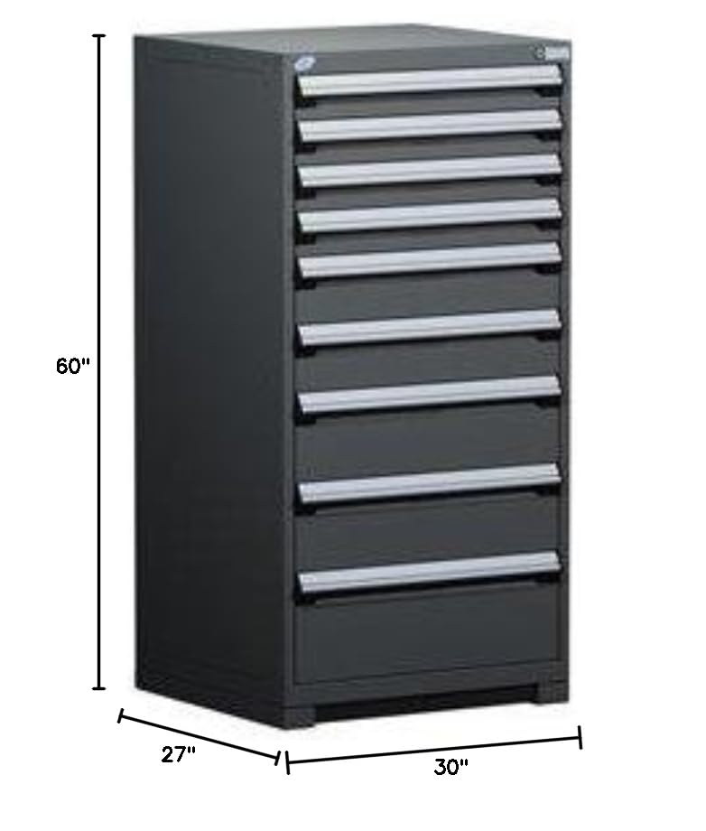 Heavy-Duty Stationary Cabinet (with Compartments), 9 Drawers (30"W X 27"D X 60"H)