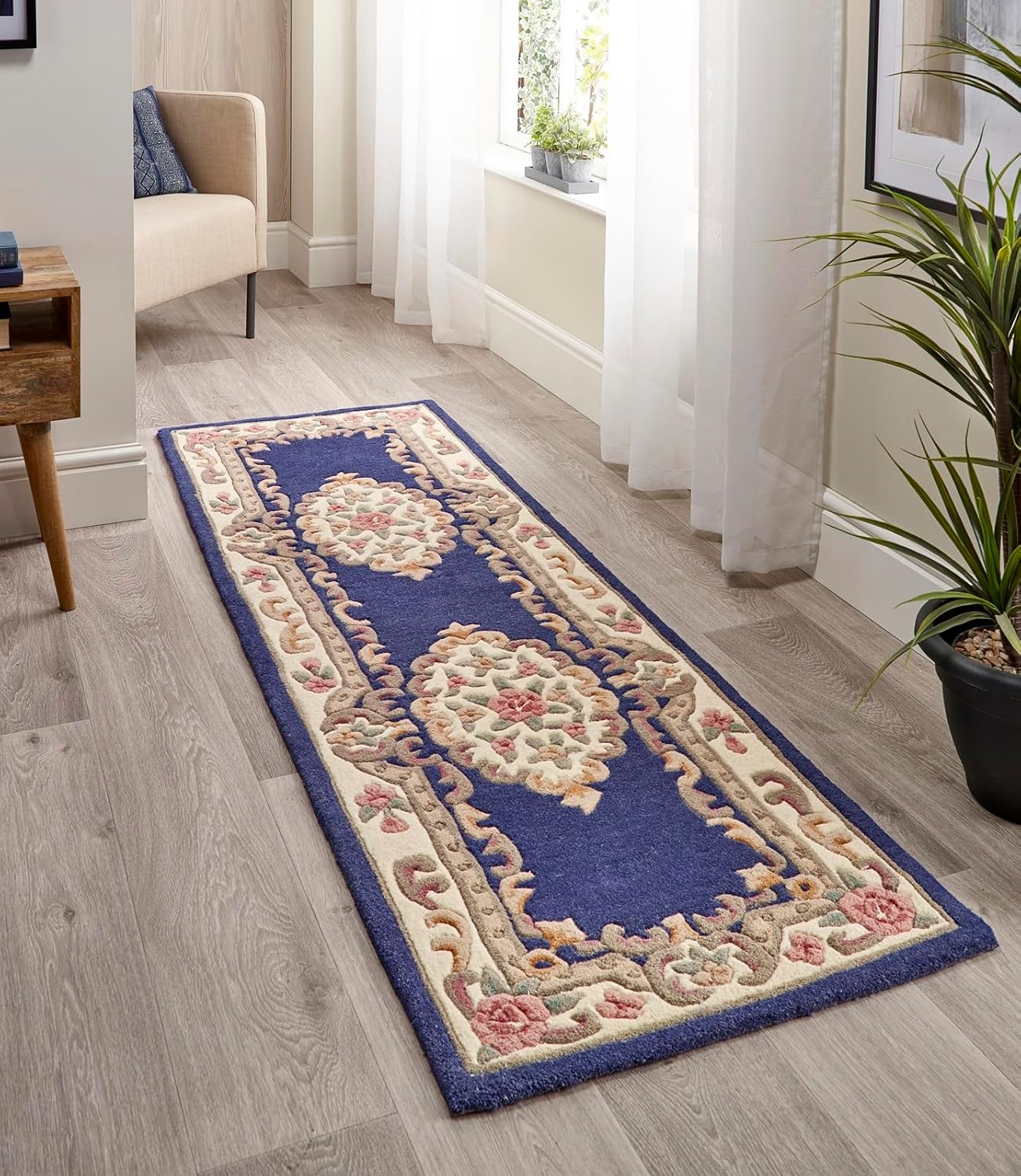 The Shensi Aubusson Wool Rug is a timeless piece that beautifully combines traditional elegance with modern durability. Featuring a stunning floral design, this rug adds a touch of sophistication and charm to any space. Part of the Shensi collection, known for its enduring appeal, this rug is available in a variety of sizes and shapes to suit different areas of your home. Crafted with exceptional skill, each rug is hand-tufted by experienced artisans using only the finest 100% pure wool. This ensures not only a luxurious texture but also remarkable durability, making it a practical and long-lasting addition to your home. The Shensi Aubusson Wool Rug is a perfect blend of classic design and exceptional quality, offering both aesthetic beauty and excellent value for money. Whether placed in a living room, bedroom, or hallway, this rug is sure to enhance your decor with its timeless floral motif and superior craftsmanship.