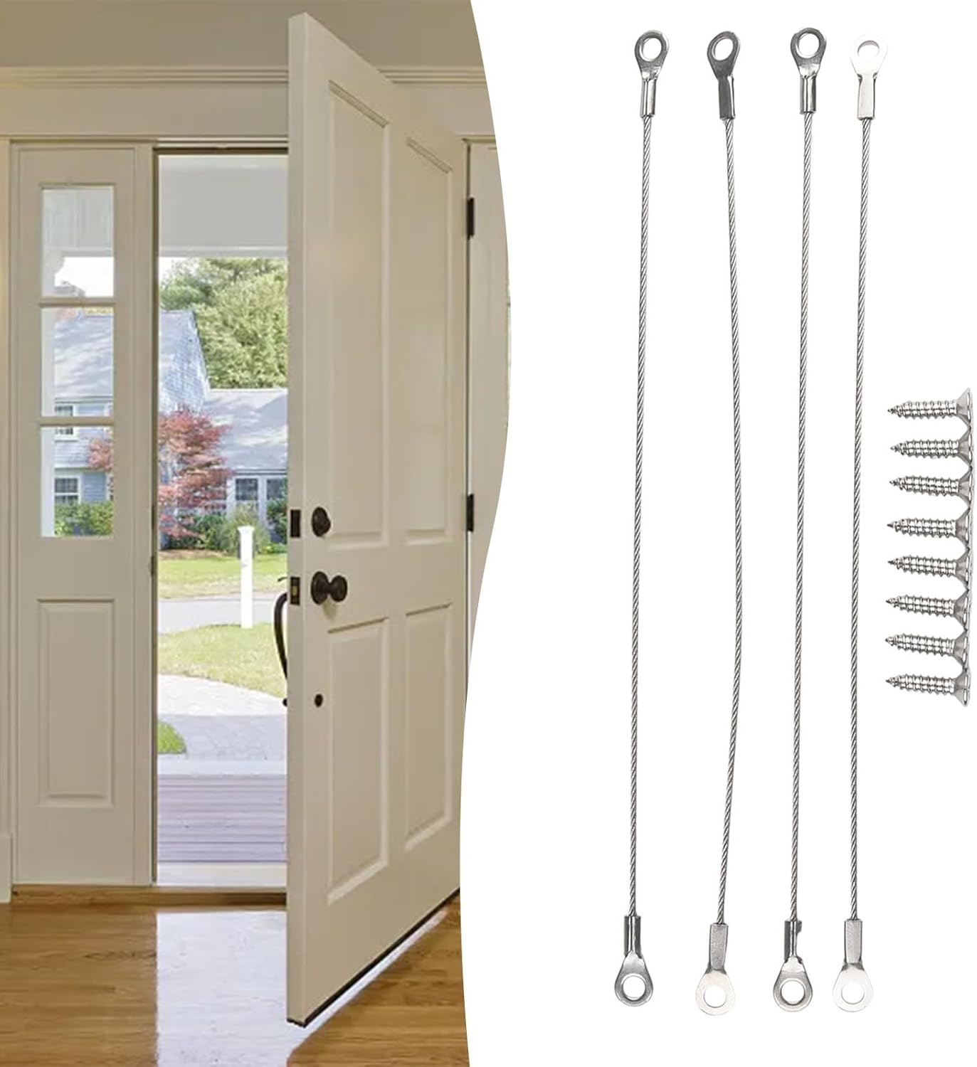 Product description Feature:*Our cabinet door restraint cables are made of flexible 304 stainless steel wire rope for superior strength and unmatched long-lasting, trouble-free .*Cabinet door restraint cables are nylon coated to surrounding surfaces.*Our door restrictors will not like typical chain stops. The cabinet door restrictor is adjustable before installation to perfectly restrict the cabinet door opening angle.*The opening angle depends on where you install the cabinet door rope stop. Prevents cabinet doors from opening too far and hitting adjacent itemsSpecification:Material: 304 Stainless SteelSize: Length: 200mm/7.87inQuantity: 4pcsPackage Contents:4 X Stainless Steel Rope Pins Manufacturer Contact Information no