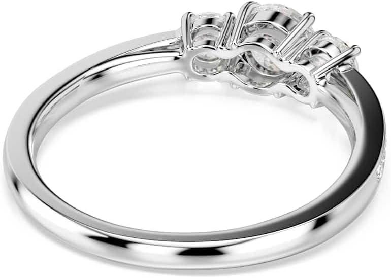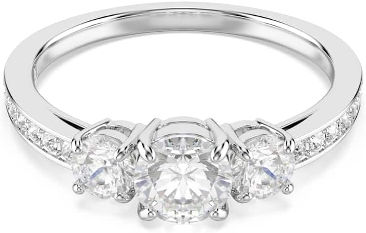 Swarovski Ladies Rings. Stilla Attract series. Color: White. Swarovski Silver-Tone Round Cut Attract Trilogy Ring. Elevate your style with this timeless ring, featuring brilliant clear crystals and a trio of meticulously cut Swarovski Zirconia set on a radiant silver-tone finish. Material: Crystals, Silver-tone finish, Zirconia.