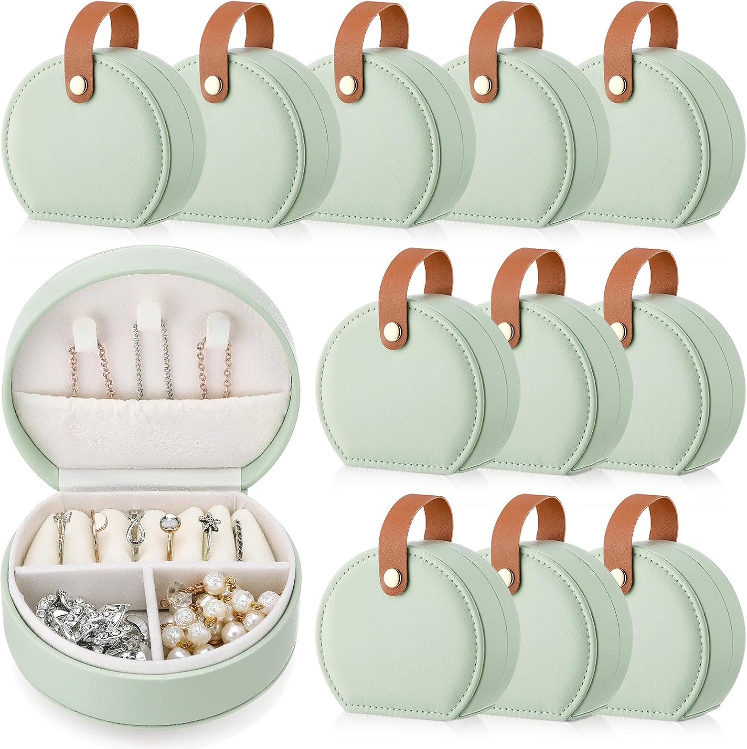 Features: This pack includes 12 mini travel jewelry boxes. They feature removable handles for easy portability, and can comfortably fit inside your bag or suitcase. Despite their compact size, these boxes can accommodate plenty of jewelry, making them suitable for travel Specifications: Material: leather Color: black, gold Size: 3.9 x 3.5 x 1.8 inches Package includes: 24 x Travel jewelry boxes Notes: Manual measurement, please allow slight errors on size. The color may exist a slight difference due to different screen displays